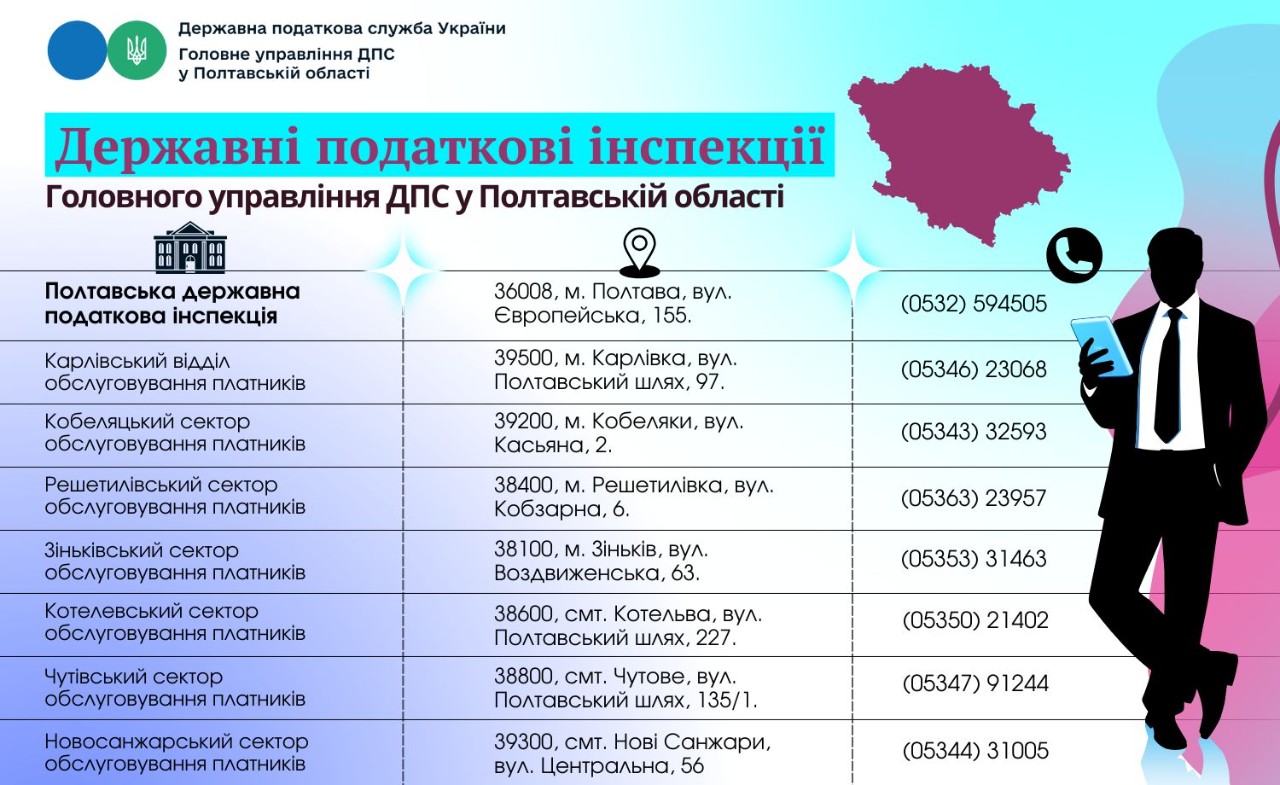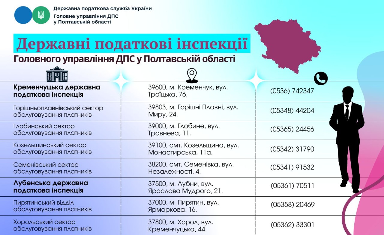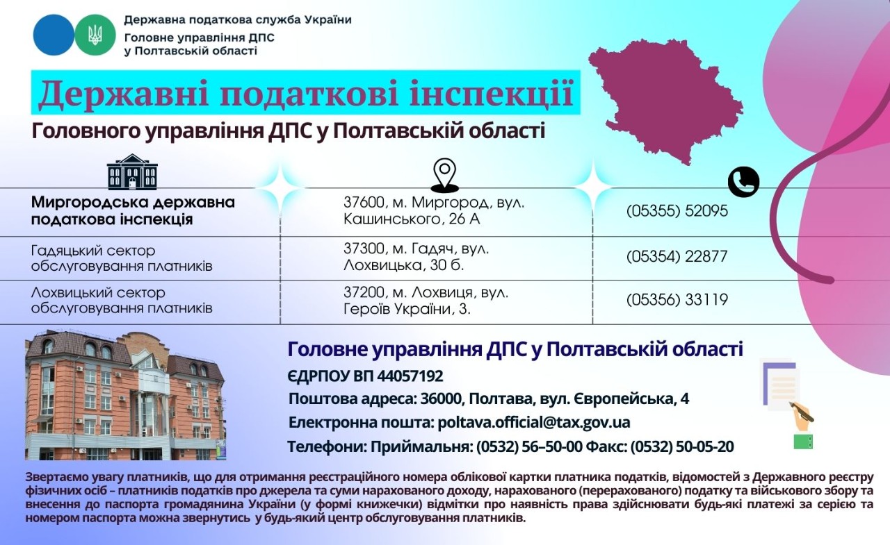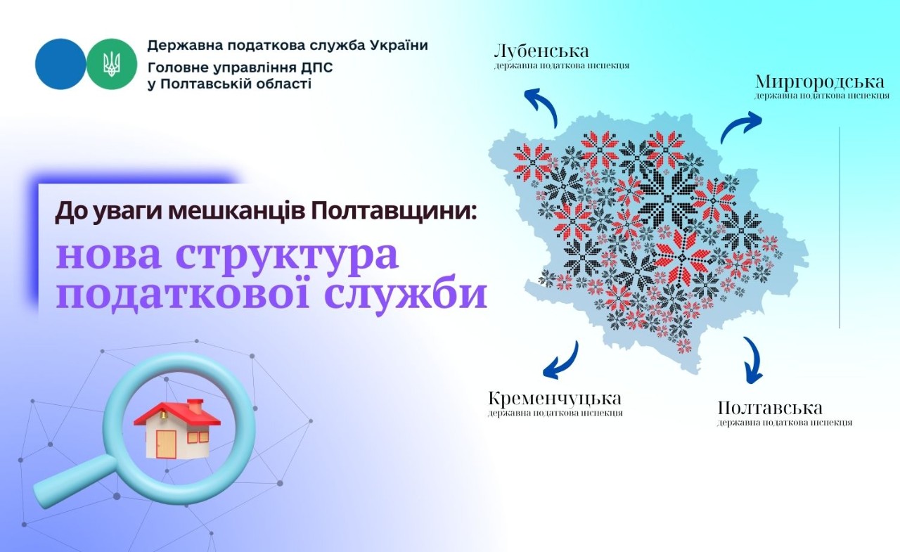 Проведено реорганізацію Державних податкових інспекцій у Полтавській області відповідно до адміністративно-територіального устрою, визначеного постановою Верховної Ради України від 17 липня 2020 року № 807-ІХ “Про утворення та ліквідацію районів” (зі змінами) та вимог наказу ДПС України від 07.10.2024 № 747 “Про затвердження переліку державних податкових інспекцій”.