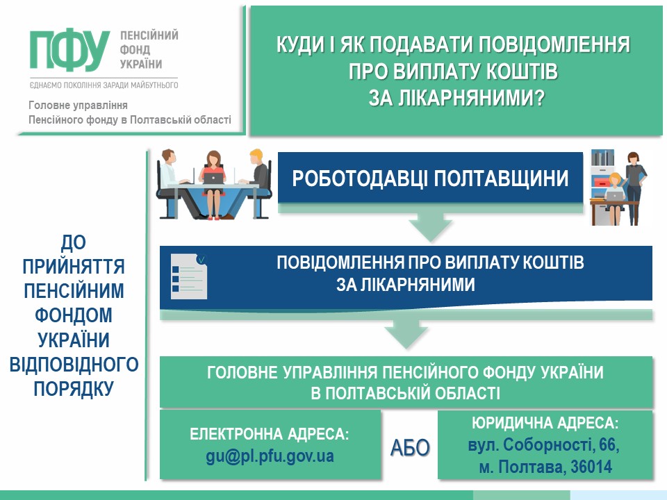 Якщо необхідно подати повідомлення до Головного управління Пенсійного фонду України в Полтавській області, роботодавці можуть надіслати документ на офіційну електронну (