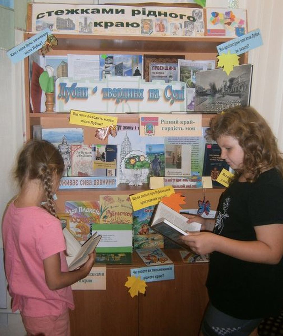 Звитяжній історії, творчим досягненням, красі рідного міста присвячена виставка-вікторина «Стежинами рідного краю» та BOOK-лабіринт «Про Лубни з любов’ю», проведені фахівцями Лубенської міської бібліотеки для дітей.