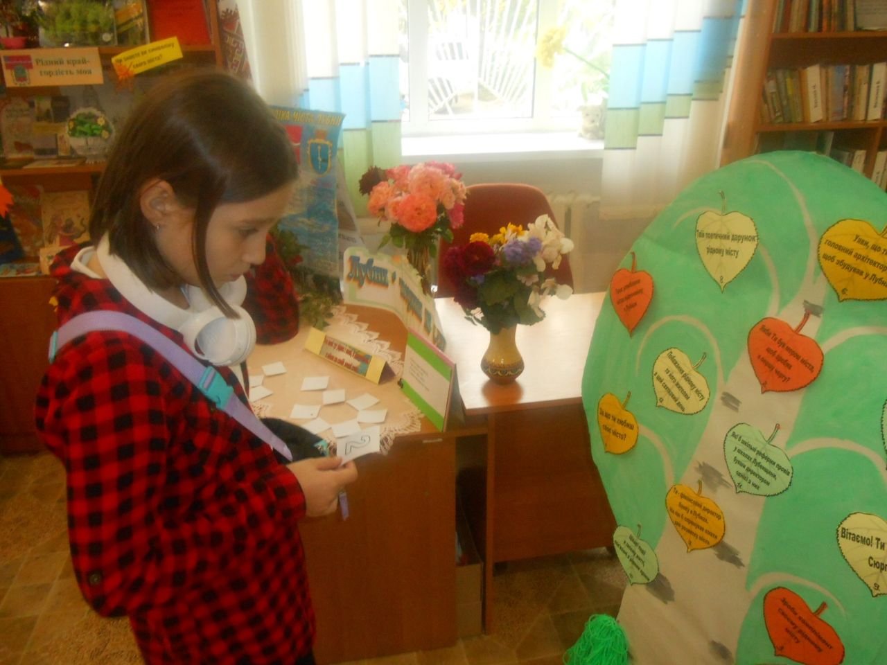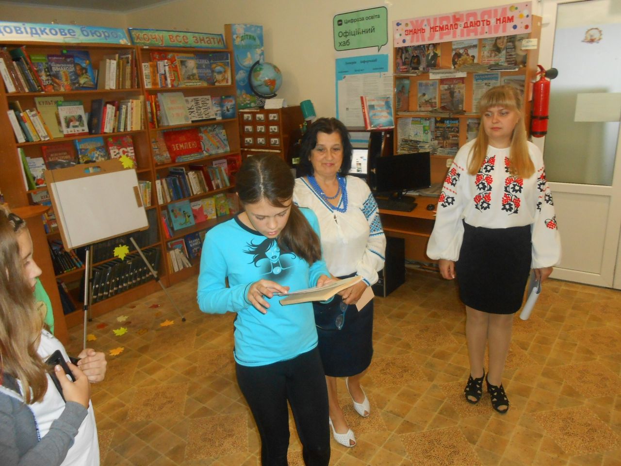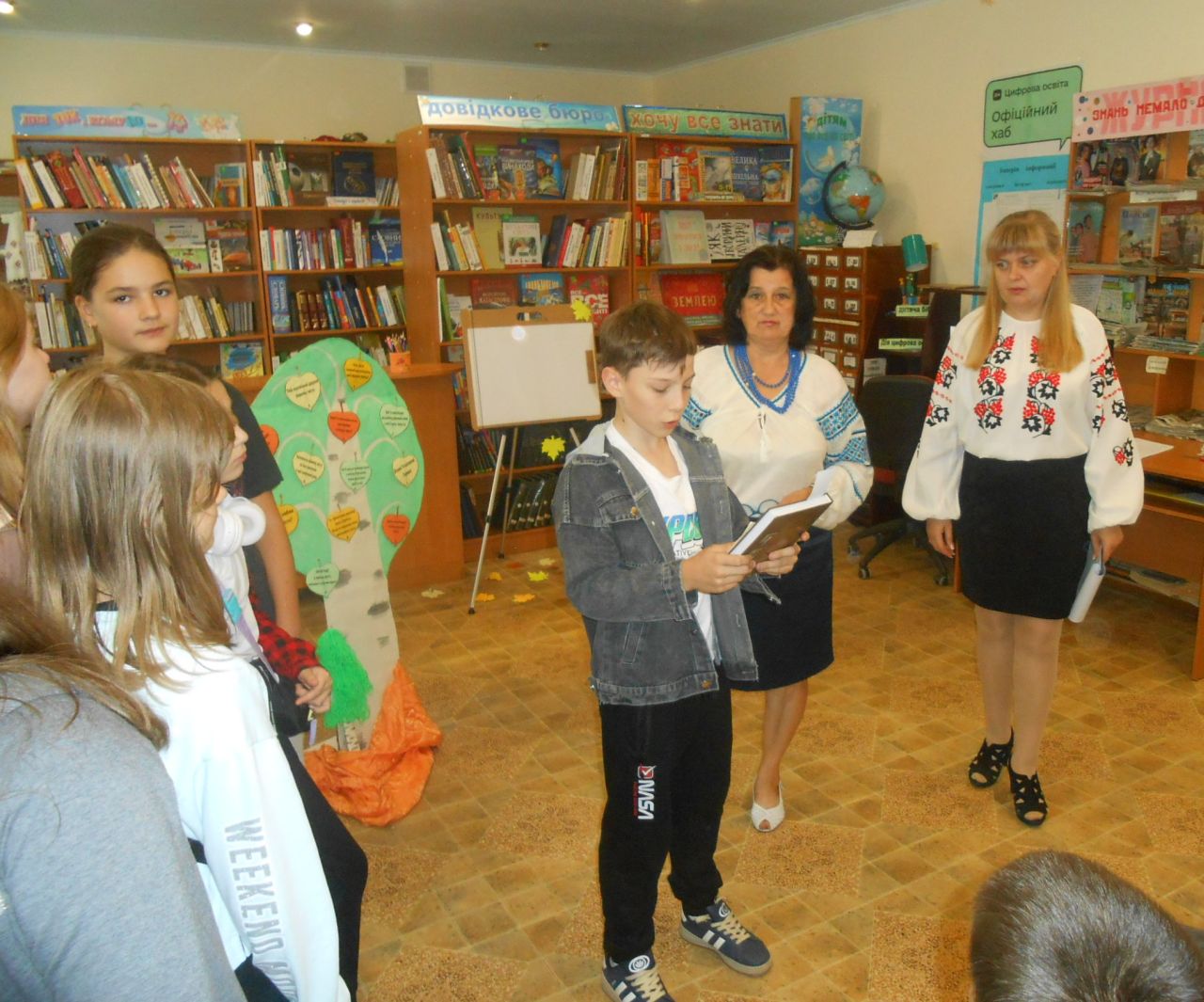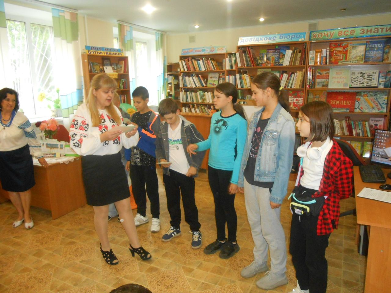 На захід до книгозбірні завітали шестикласники гімназії імені Матвія Номиса. Юні лубенці пройшлися сторінками історії рідного краю, взяли участь у пошуково-книжковому квесті «Лубенщина – земля любові нашої», створили колективний малюнок «Ріднокрай». Продемонстрували неабияке знання пам’яток Лубен, відгадуючи вікторину-слайд «Знавець рідного міста». Завзято і креативно фантазували, мріяли, міркували, граючи в інтерактивну гру «Моя мала Батьківщина». Заплітаючи поетичний віночок, учасники дійства познайомилися з творами письменників-земляків. Подарували місту компліменти та побажання Миру і Добра.