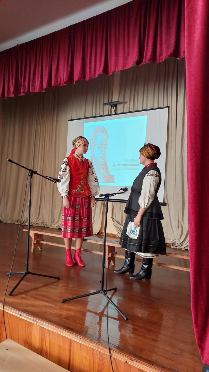 Калайдинцівський СБК надав допомогу в створенні образів для уривку інсценізації п'єси "Наталка Полтавка" на заході, присвяченому 255-й річниці від дня народження поета, драматурга, громадського діяча Івана Петровича Котляревського.
