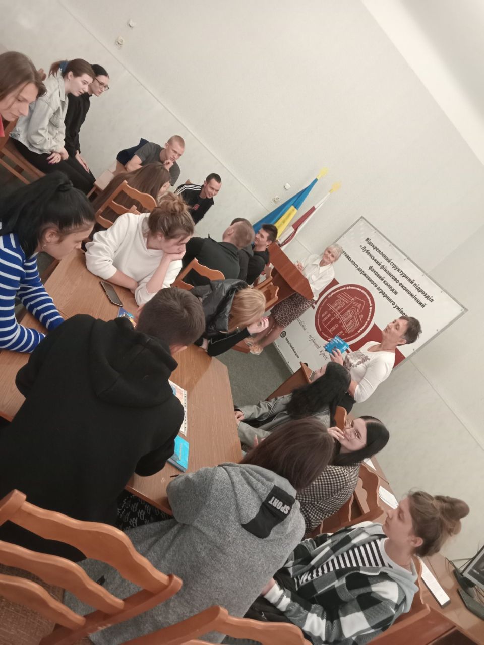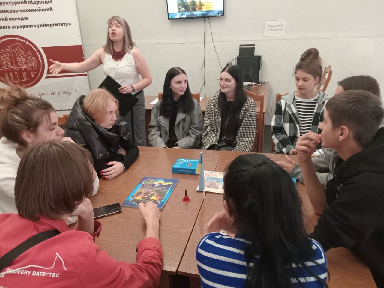 Студенти 20 групи спеціальності «Фінанси, банківська справа, страхування та фондовий ринок» під керівництвом викладача Світлани Дзюби розділилися на дві команди - «Хортиця» і «Козацька Рада». Майбутні фінансисти та банкіри відповідали на каверзні питання, демонструючи власну ерудицію, знання історії та географії України. А між цим до розваг долучилися бібліотекарі.