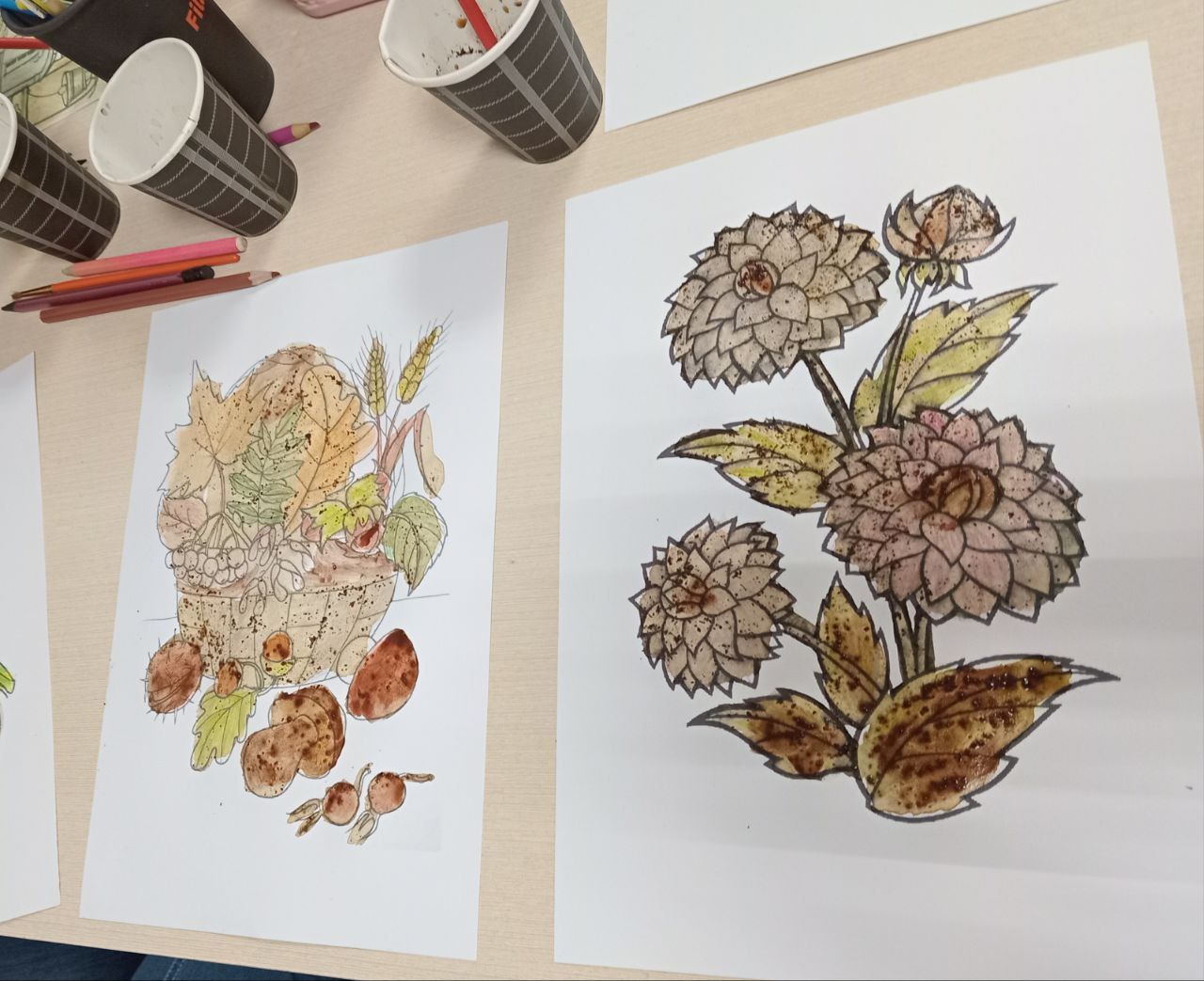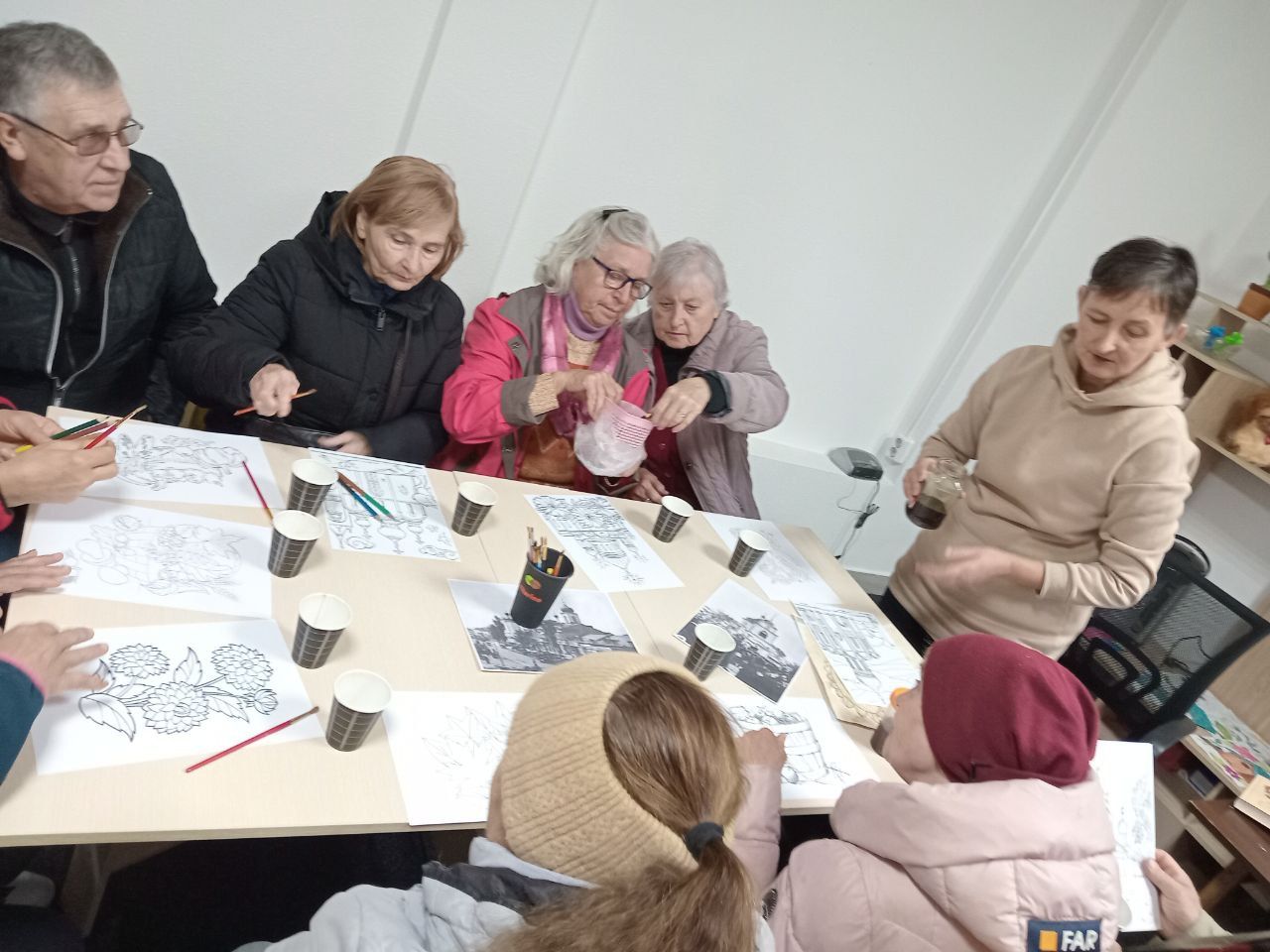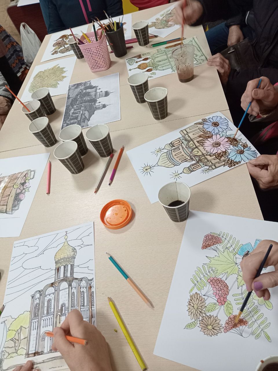 Цього разу зустріч мобільної бібліотеки охопила краєзнавчу мозаїку нашого краю. Бібліотекар Марина Кононенко ознайомила присутніх з історією міста, зокрема, походженням назв його вулиць, ілюструючи свою розповідь ретро-світлинами храмів Лубен, та спинилася на тематиці історичних романів Володимира Малика. А бібліотекар Лариса Гончарук провела майстерку "Малюємо кавою", запропонувавши поважним слухачам розмалювати не лише натюрморти, а й архітектурні цікавинки – церкви. Малювати кавою — це поєднати ніжний живопис із великою кількістю тепло-золотих відтінків й акварельних ефектів. Одна з найароматніших програм арттерапії, що чудово розвантажує, знімає стрес та створює позитивний настрій.