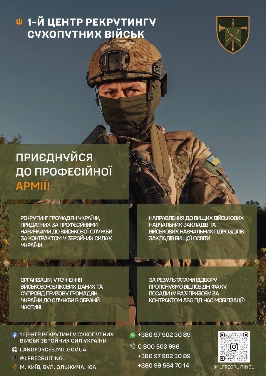 Ми є військовим підрозділом Сухопутних військ Збройних Сил України, що забезпечує прозорість та повну підтримку на всіх етапах: від підготовки документів до зарахування у підрозділ. Рекрутинг не передбачає негайного відправлення в обрану військову частину.