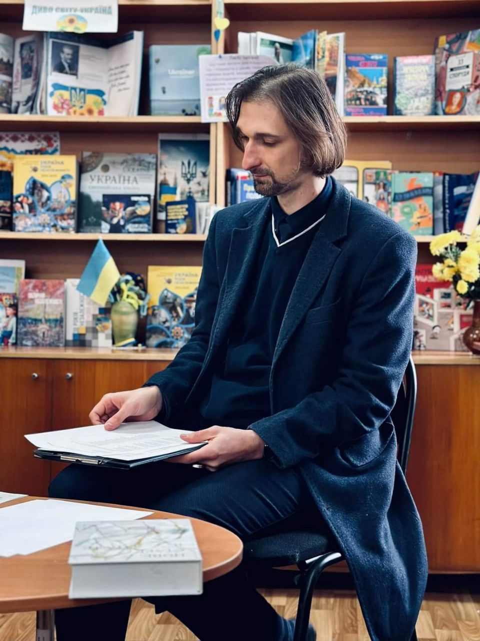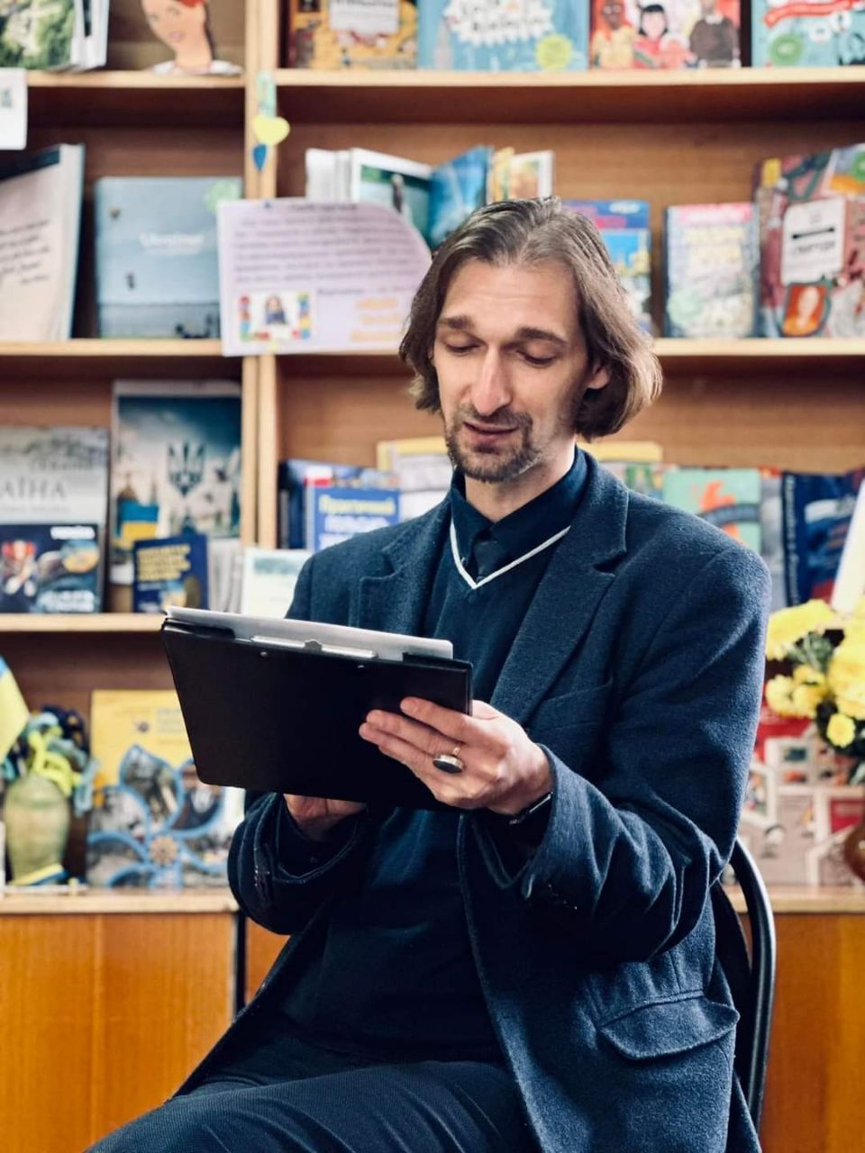Наш гість - лауреат Всеукраїнської літературної премії імені Василя Юхимовича та інших вагомих відзнак народився в місті Горішні Плавні, упродовж 2003-2004 років навчався у США, а свої перші поетичні твори написав у вісім років. Самобутній поет, професор кафеди культурології, філософії та музеєзнавства ПНПУ імені В. Г. Короленка, актор, автор десятків поетичних та драматичних творів дивовижно теплим оксамитовим баритоном та продуманими питаннями створив затишну та позитивну атмосферу зустрічі.