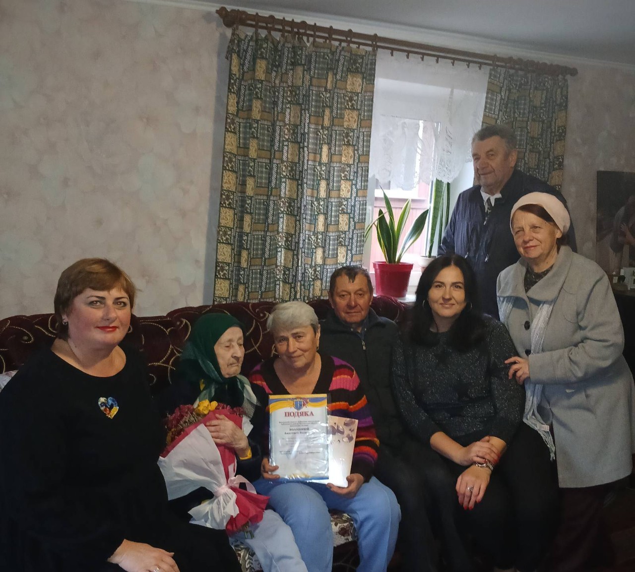 Привітати ювілярку та її родину зі святом завітали заступник директора Територіального центру соціального обслуговування (надання соціальних послуг) Лубенської міської ради Жанна Даценко, спеціаліст сектору по роботі з органами самоорганізації населення Оксана Дрипан, голова відокремленого підрозділу Організації ветеранів України у Лубенській міській територіальній громаді Олексій Пивовар. З нагоди поважного ювілейного Дня народження гості висловили жінці слова вдячності та шани за багаторічну сумлінну працю, за мудрість та досвід, які вона передала своїм дітям, онукам та правнукам, та вручили Подяку Лубенського міського голови Олександра Грицаєнка, подарунки та квіти.