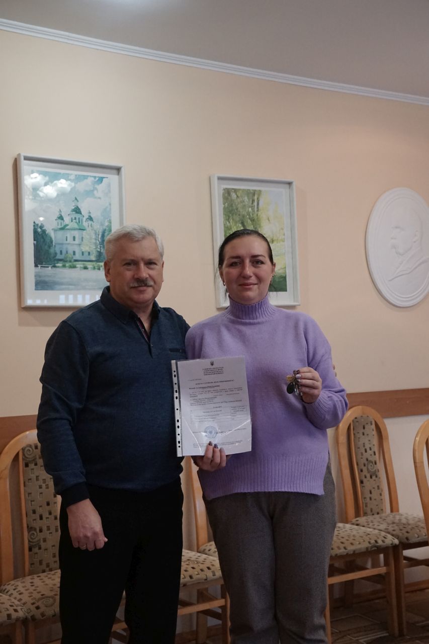 Передноворічні дні принесли приємність у родину вчительки початкових класів Першої гімназії імені Матвія Номиса Юлії Гончаренко. 24 грудня вона отримала ключі та документи на користування службовою квартирою.
