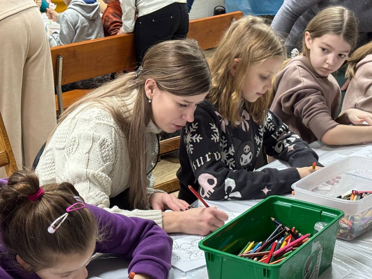 Для дітей підліткового віку діяла своя цікава програма: розфарбовування одягу, плетіння браслетів, рукоділля, також різноманітні квести з різними локаціями та завданнями. Ігри, конкурси, жива музика від молодіжної музичної групи, шоу талантів, де підлітки змогли продемонструвати свій талант у співах, танцях, грі на музичних інструментах. Кожен день перебування у різдвяному таборі закінчувався тематичними музичними вечорами. А протягом дня дітей годували ланчем та смачними обідами. До речі, кошти на харчування дітей перерахував військовий, який після тяжкого поранення й донині перебуває в лавах ЗСУ і побажав не оприлюднювати його прізвища. Зібрані під час святкового різдвяного ярмарку кошти були передані на потреби воїнів ЗСУ, як і дитячі малюнки.