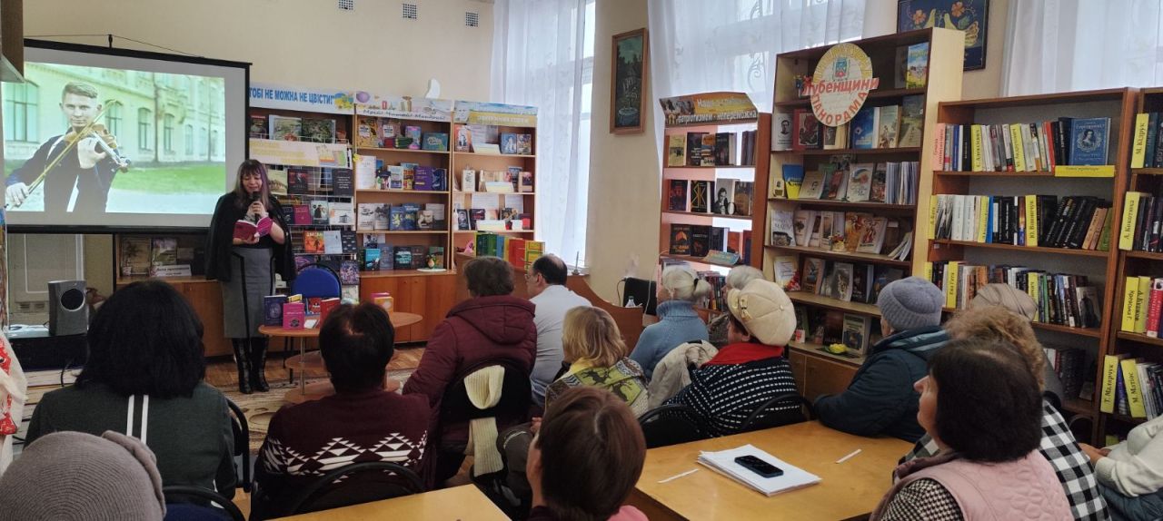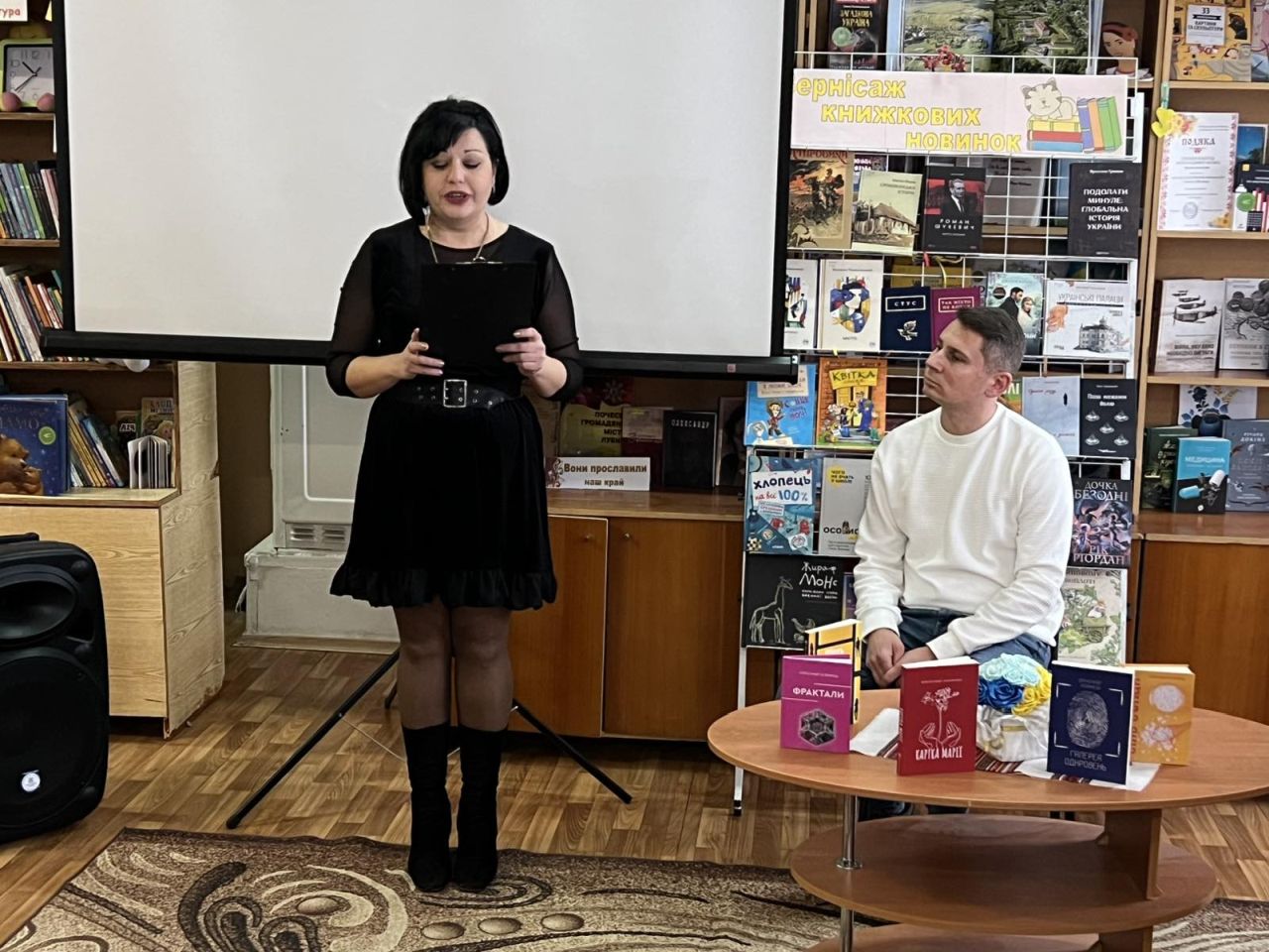 Поціновувачі літературного слова доторкнулися до прози та поезії пана Олександра, а презентація новенької збірки «Фрактали» - це вірші для жінок та про жінок. Поезію зі збірки декламувала бібліотекар Марина Кононенко.