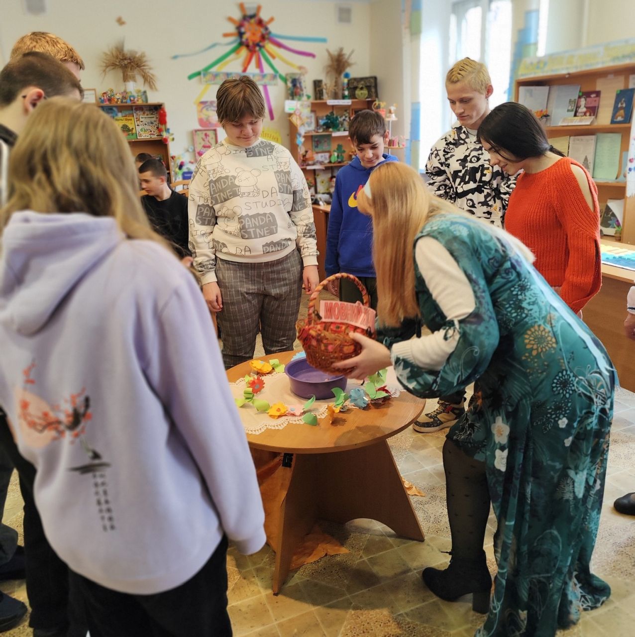 Подорожуючи барвистою планетою, даруючи компліменти мові, діти збирали незвичайні квіти до Мовного кошика. А на завершення заходу, перевтілившись у чарівників, опускали квіти на воду. І розквітали вони, торкаючись води, так само, як наша Земля, як рідна мова, даруючи красу усім присутнім.