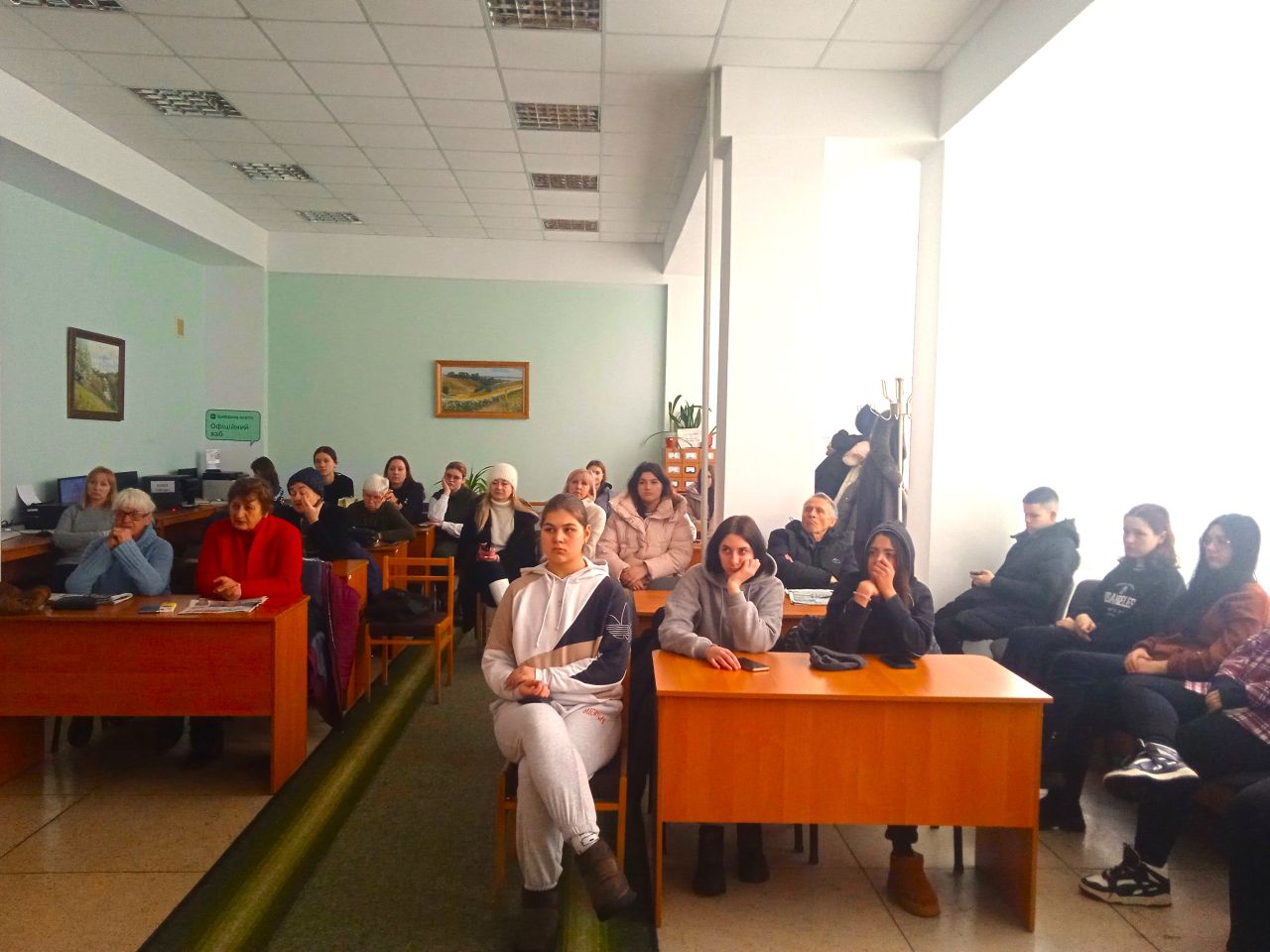 Бібліотекар Світлана Петрик ознайомила з тематичною книжковою виставкою, яка містить, зокрема, і видання, отримані книгозбірнею завдяки україно-швейцарському проєкту «Діємо для здоров’я».