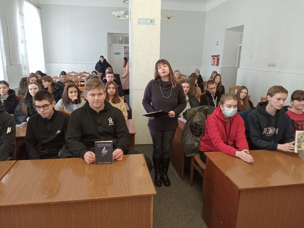 З цієї нагоди бібліотекарі Лубенської публічної бібліотеки імені Володимира Малика провели зустріч з молоддю «Хто за свободу вийшов проти смерті, тому немає смерті на землі». Під час панорами гідності студенти І-ІІІ груп ВСП «Лубенський фінансово-економічний фаховий коледж ПДАУ» не лише змогли поринути в події минулого, завдяки відеохроніці подій, а й відповідали на питання бібліотекарів про роль Революції Гідності в сьогоденні нашої держави. Для багатьох студентів це було своєрідне відкриття, адже під час подій Майдану їм було 4-5 років. Патріотичне наповнення зустрічі додали кліпи учасника революційних подій Святослава Вакарчука. А рефреном діалогу стала теза пошани й поваги до наших захисників. Нині не одна сотня небесних янголів стали уособленням звитяги, національного спротиву та жертовності, кладучи свої життя на фронтах країни.