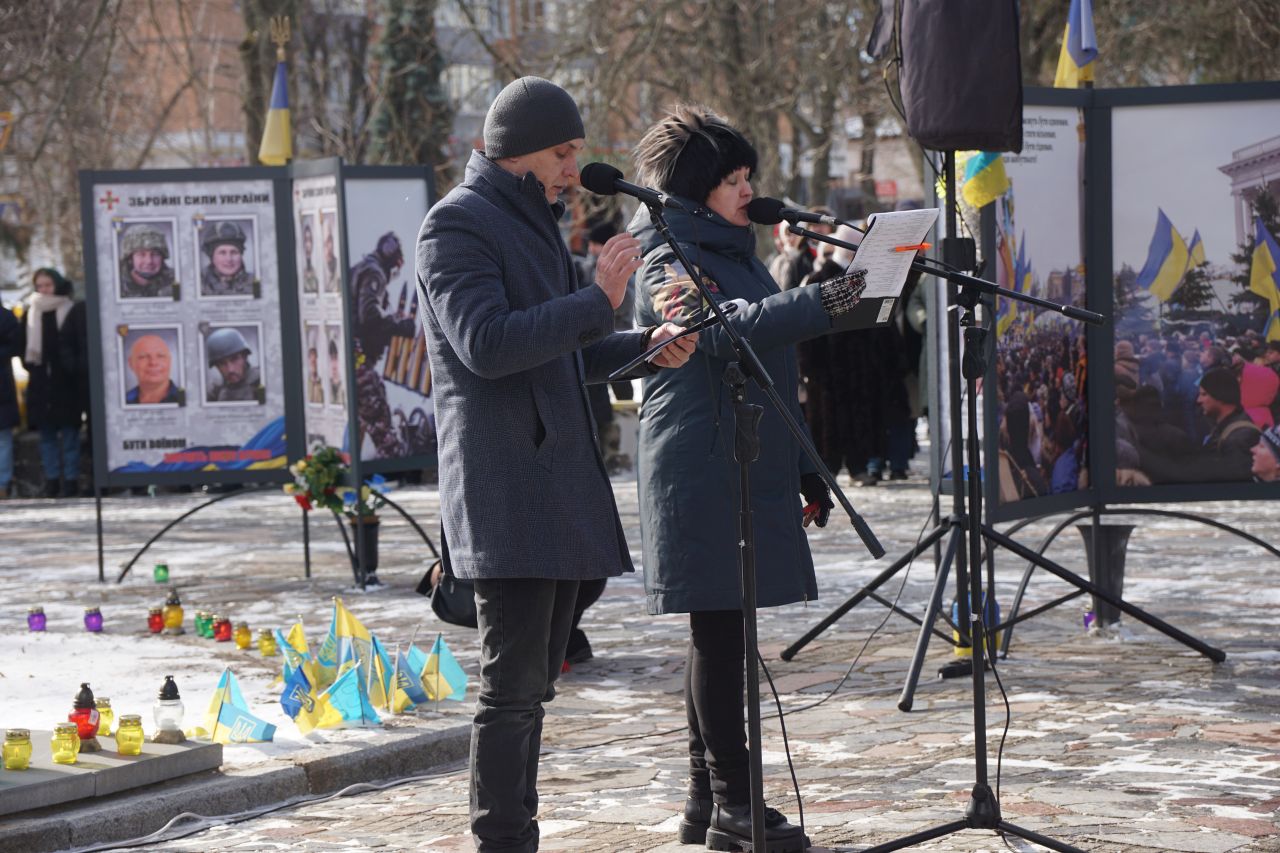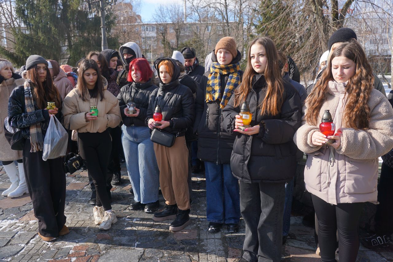 Присутні вшанували пам’ять загиблих хвилиною мовчання. Запалали свічки в пам’ять про українців, які загинули на Майдані Незалежності, лубенців, які боронили й боронять нашу державу, віддаючи свої життя за нашу свободу.