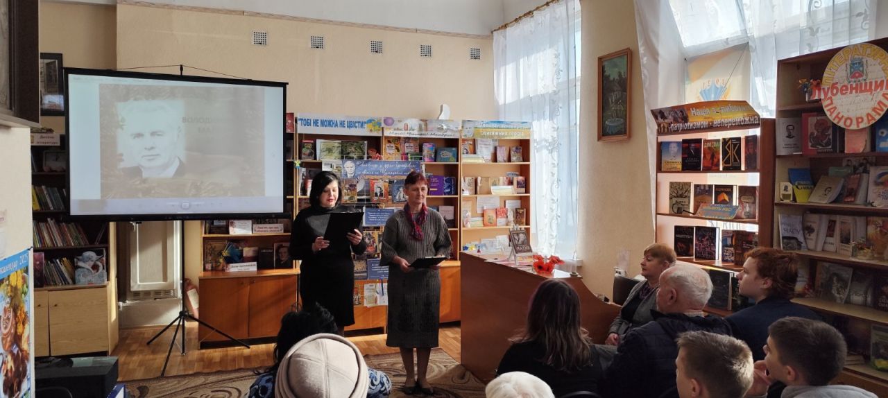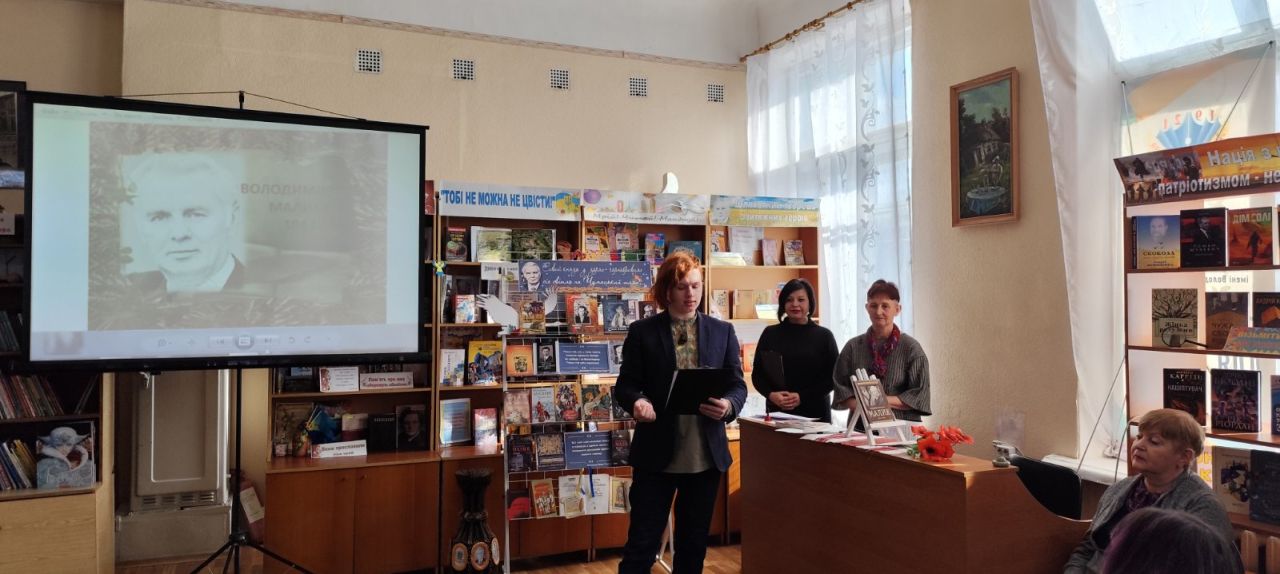Володимир Кирилович відкрив для нас усіх приховану правду історії, навчив шанувати славних пращурів, змусив «глянути на неприкриту правду минулого, щоб зачерпнути в ній не зневіру, а силу». Бібліотека, якій випала щаслива доля носити ім’я великого майстра слова, напередодні 104-ї річниці від дня народження Володимира Малика радо вітала у своїй літературній світлиці гостей: учнів 8-го класу Української класичної гімназії та читачів на вечорі історичного портрету «Лицар українського роману». З вуст ведучих заходу - фахівців книгозбірні Інни Сизоненко та Лариси Гончарук, присутні дізналися про життєвий і творчий шлях Малика та його знайомство з Лубнами. Письменниця Ганна Кревська, лауреатка премії імені В. Малика, прочитала уривок зі свого оповідання «Чорнобривці», написаного на основі однойменної книги спогадів класика української літератури.