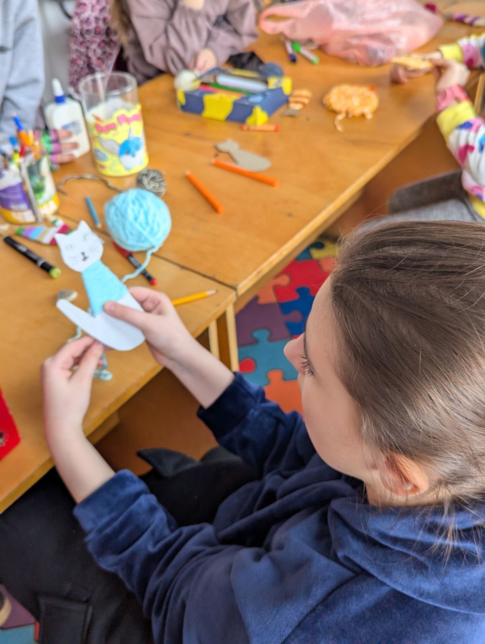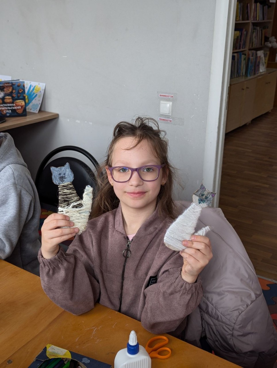 Керівник клубу Лариса Гончарук ознайомила учасників заходу з корисною інформацією про домашніх кицьок. Бібліотекар Сніжана Кириченко запросила дітей до бесіди про пухнастиків, тож «Книжкові розумаки» порадували бібліотекарів своїми знаннями у «котознавстві». Дитячі очі світилися від захвату, коли вони дізналися таємниці котячого світу з пізнавального відеоролика. Звісно, діти переглянули книжкову колекцію Бібліо-Кота з «Мур-Мур-Лендії». І яким був захват бібліотечного Кота, коли знайшлися любителі цікавезних історій! Одну з них – «Майка і Смугастик» - читали вголос. Та ще Котячий квартал відкрив творчу майстерню для «Книжкових розумак». Кожен учасник виготовив власного пухнастика з картону та шерстяних ниток. Це були не просто іграшкові котики, а справжні громадяни «Мур-Мур-Лендії». Ми дякуємо дітям за активну участь і неймовірні роботи! Сподіваємося, що любов до чотирилапих пухнастиків залишиться у їхніх серцях і надихне на читання книжок.