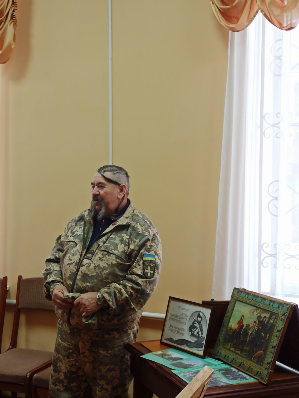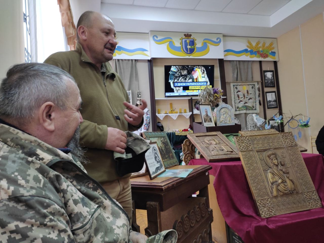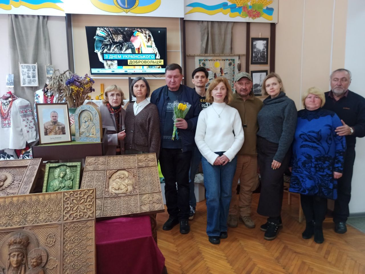 Приурочене до Дня добровольця було і відкриття виставки робіт з дерева лубенця-захисника Гулака Олексія. Патріот, учасник АТО/ООС від самого початку війни, він помер 15 березня 2022 року від отриманих поранень під час ворожого штурму у Донецькій області. На зустріч завітав брат воїна – Олег, який поділився спогадами про цю віддану Батьківщині, відповідальну та творчу людину. Ікони, створені захисником, викликали щире захоплення гостей заходу. Відтепер вони є ще й символом незгасимої пам’яті про непросту життєву дорогу героїчного земляка.