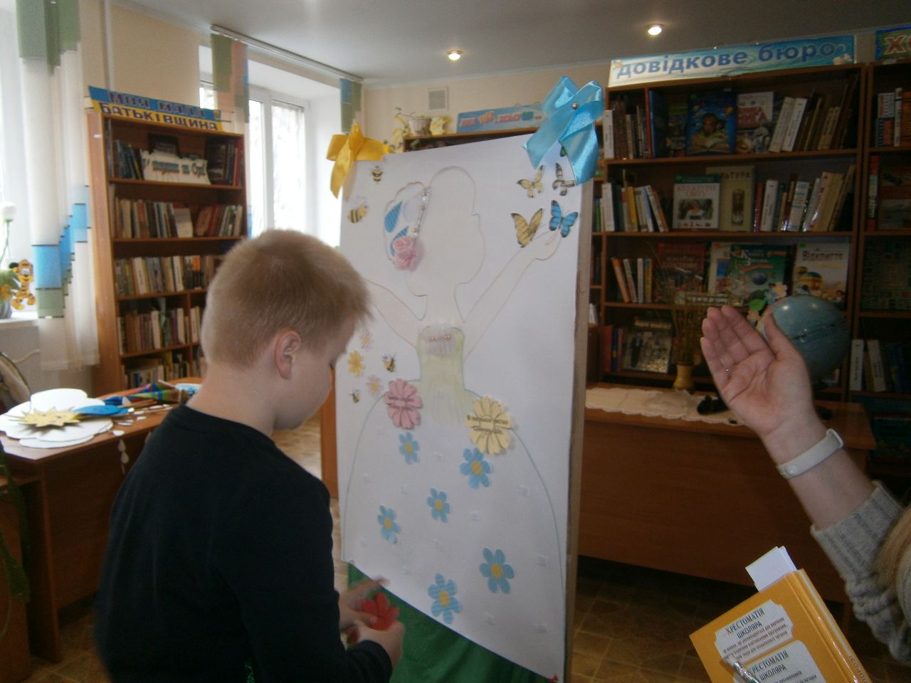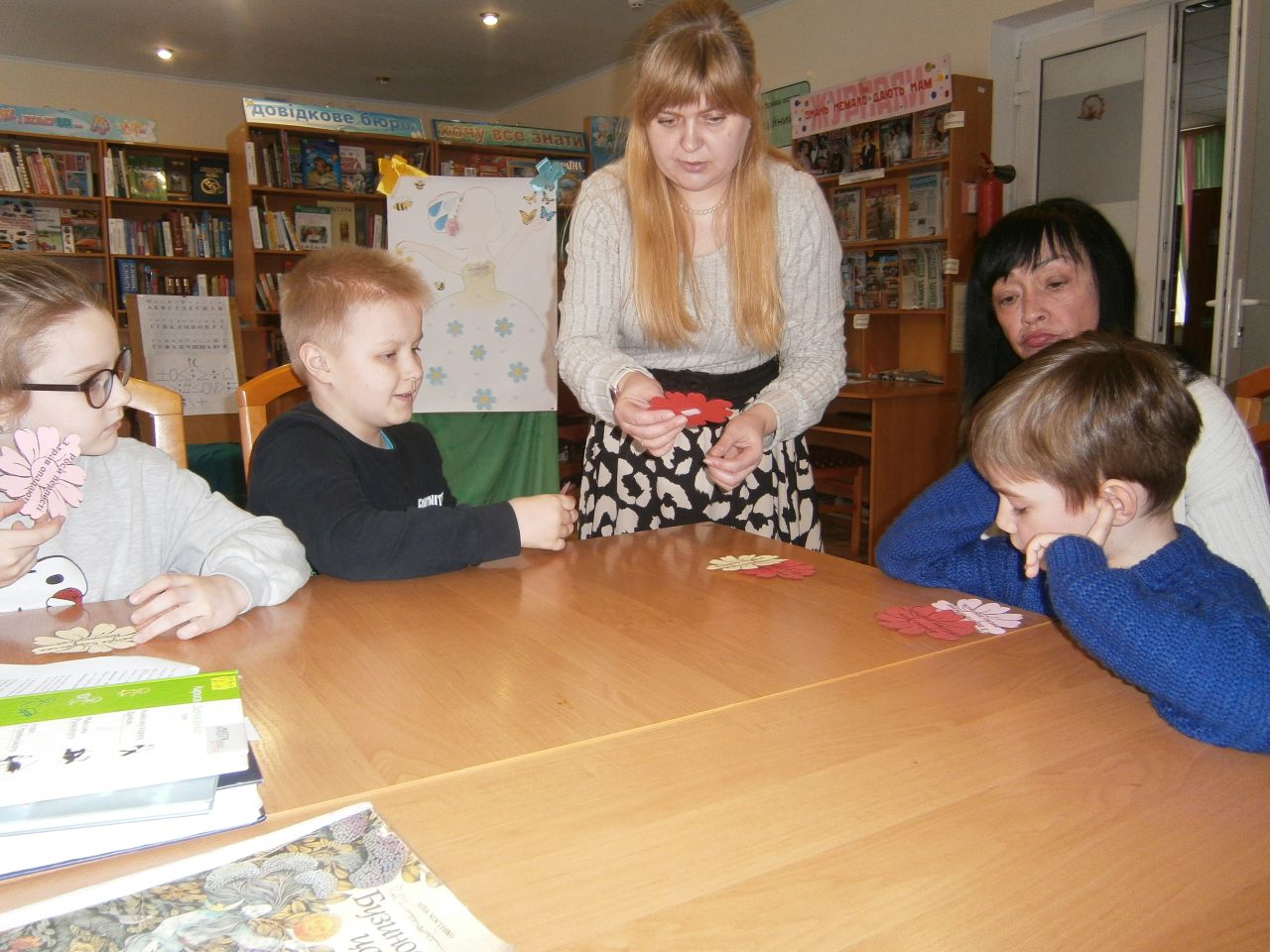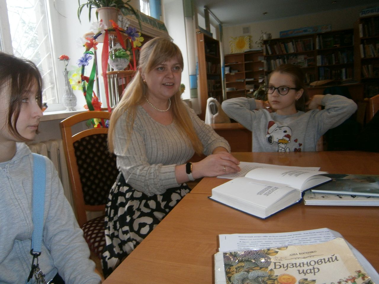 Щире, невимушене спілкування дало змогу пізнати цікаві факти із творчих біографій митців слова. І серйозна поезія з глибоким філософським змістом, як то «Мій перший вірш...», «Страшні слова, коли вони мовчать» Ліни Костенко, так і чудові її дитячі твори «Бузиновий цар», «Дощ» схвилювали і зачарували присутніх. А крилатий вислів-заклик Максима Рильського «Як парость виноградної лози, плекайте мову.» із його вірша «Мова» діти успішно розшифрували в запропонованій бібліотекарем інтелектуальній шараді. Гуртом декламували улюблений дитячий вірш кількох поколінь «Білі мухи» і навіть створили картину на поезію Максима Тадейовича «Дівчина».