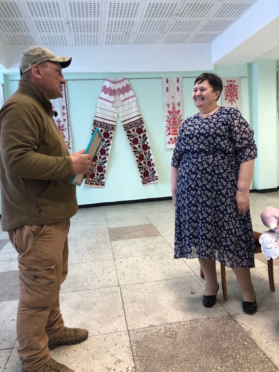 З вітальним словом, щирими побажаннями добра до вишивальниці звернулись керуючий справами виконавчого комітету Лубенської міської ради Юлія Білокінь, начальник Управління культури і мистецтв Юрій Литовченко, в.о директора Лубенського краєзнавчого музею імені Гната Стеллецького Тетяна Сафронова, голова Лубенської районної організації профспілки працівників освіти і науки України Людмила Грицаєнко, народна майстриня художньої вишивки, членкиня Національної спілки майстрів народного мистецтва України з міста Гребінки Олена Наталенко, талановита майстриня, журналіст газети «Вісник» Тамара Бірюкова, головний редактор газети «Вісник» Людмила Бірюкова.