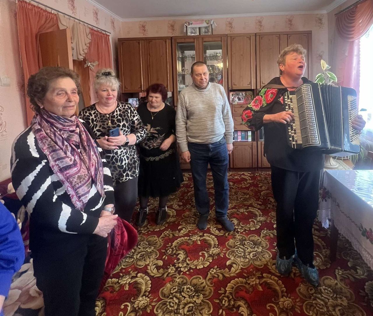 Для ювілярки Алла Якименко та Тетяна Білоха виконали українські пісні, які нікого не залишили байдужими. Катерині Юхимівні гості побажали міцного здоров’я, родинного затишку, добра , миру та неодмінно стати свідком української перемоги.