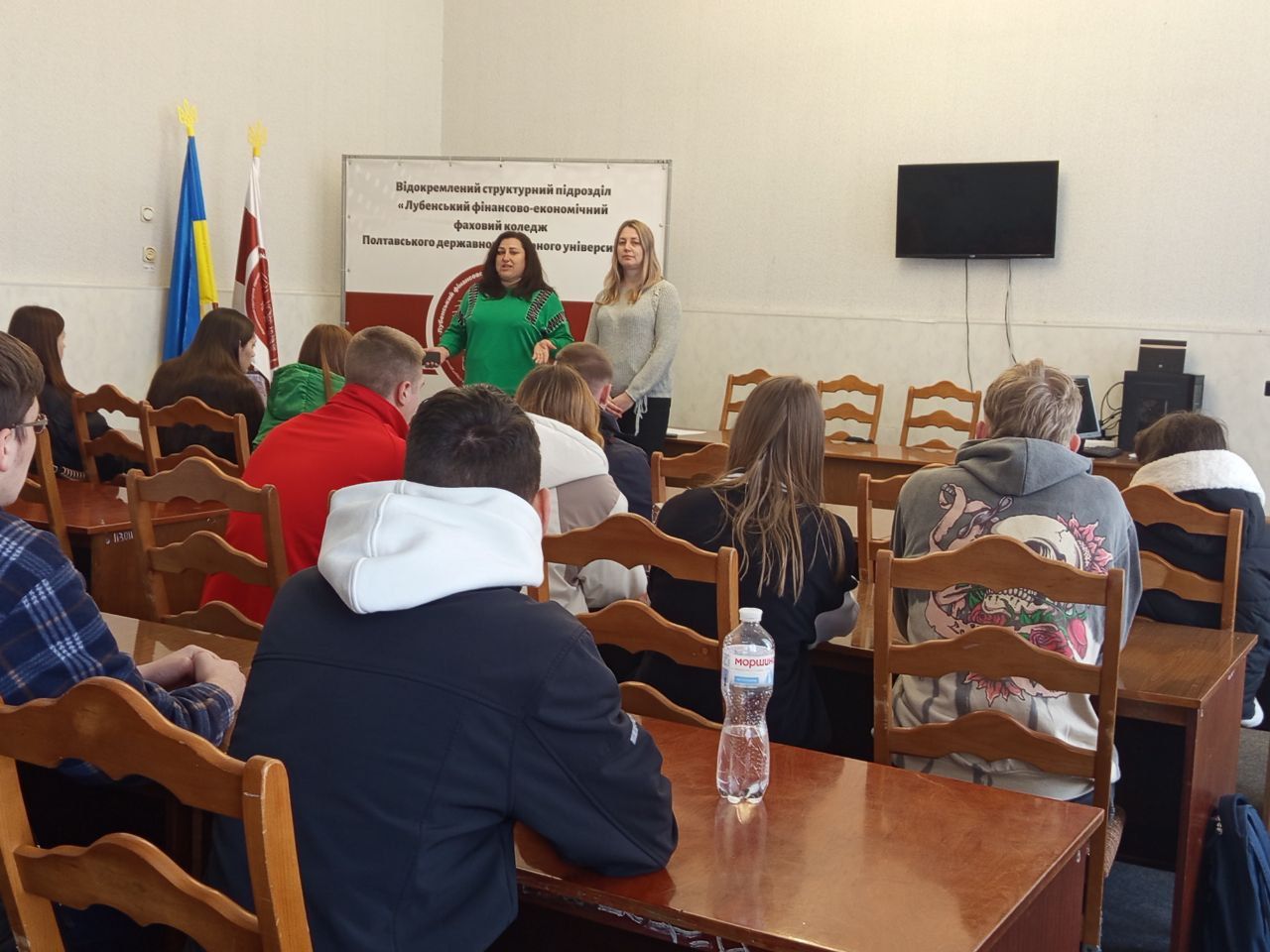 14 квітня фахівцями служби «Мобільна бригада соціально-психологічної допомоги постраждалим від домашнього насильства та/або насильства за ознакою статті» Лубенського міського центру соціальних служб (директор Ірина ХАРЧЕНКО) було проведено інформаційне заняття для студентів Лубенського фінансово-економічного коледжу ПДАА на тему: «Ми - проти насильства».