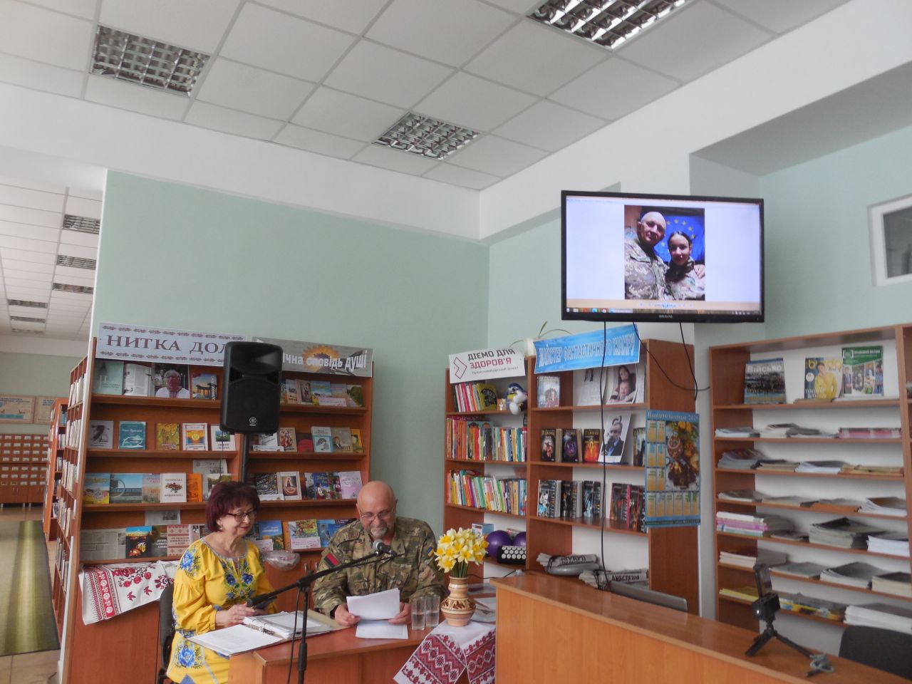 Віктор Залевський в даний час боронить нашу державу, тож його твори, перекладені Людмилою Таран-Пономаренко на українську мову, читав учасник бойовий дій, лейтенант Петро Ворона та сама пані Людмила.