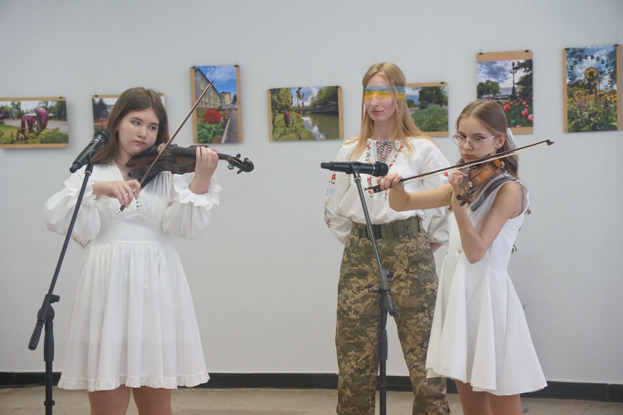 Виставка супроводжувалася фортепіанною музикою та виступами дуету скрипалів Лубенської школи мистецтв.