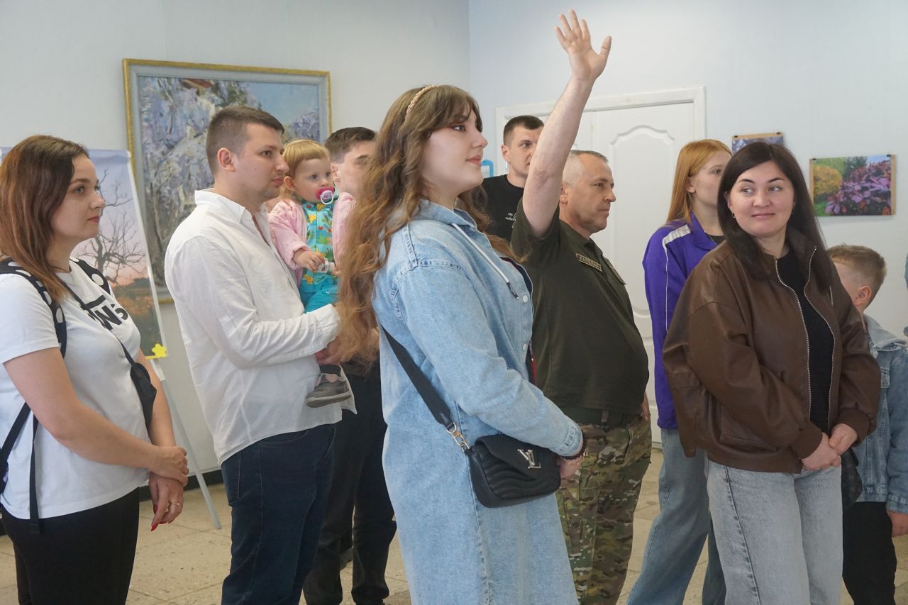 Звертаючись до гостей виставки, Вадим Хоменко наголосив, що представлені роботи – це діалог між боротьбою та відродженням, між тишею квітучих садів та гуркотом війни. Це надія на мир, на новий день, спокійний та мирний.