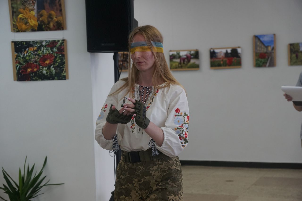Зрозуміти світлини допоміг символічний образ сучасної української жінки-воїна, берегині, незламної захисниці, образ якої втілила Каміла Чернишова і який став незабутнім доповненням мистецького дійства.