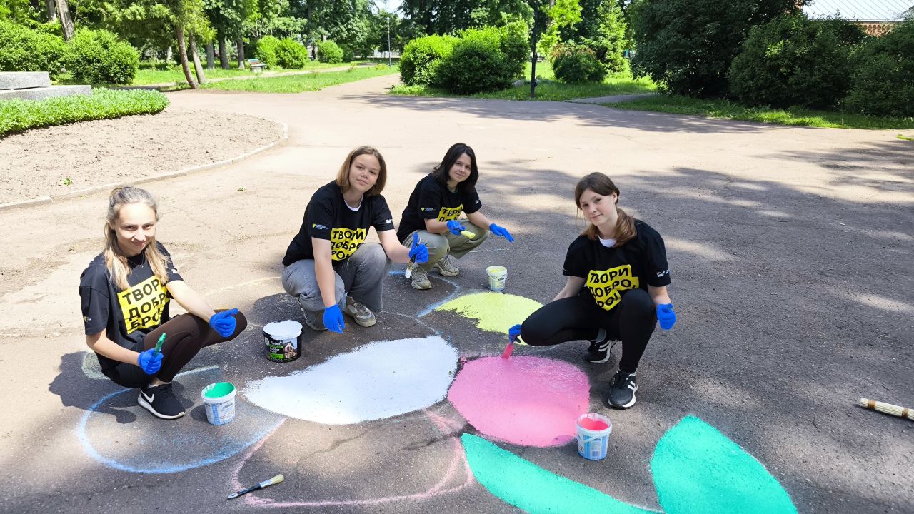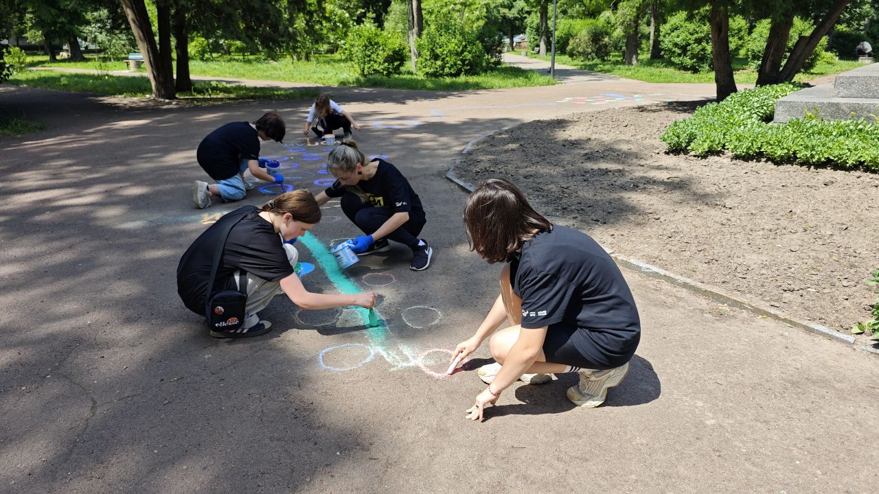 З нагоди відзначення дня захисту дітей учасники Шкільного клубу волонтерства долучилися до волонтерської інціативи. Різнобарвною фарбою та пензликами перетворили сірий асфальт у веселий ігровий майданчик! Головна мета цієї ідеї - щоб лубенські діти змогли цікаво проводити час за грою, відвідуючи дитячий парк ім. Олеся Донченка. Спочатку придумали гру, а потім розкреслили і намалювали її на асфальті центральної алеї парку.