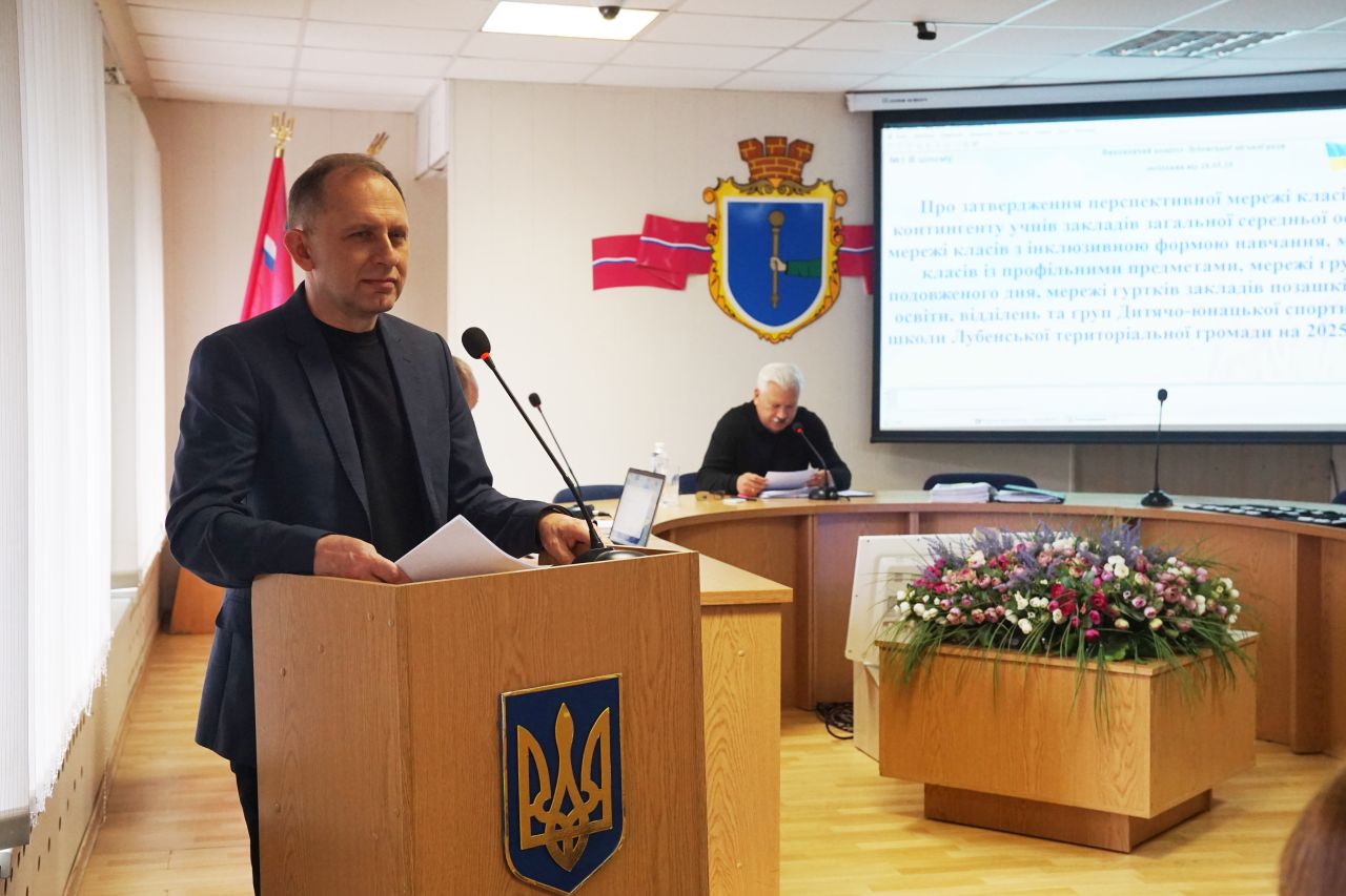 Про затвердження перспективної мережі класів і контингенту учнів закладів загальної середньої освіти, мережі класів з інклюзивною формою навчання, класів із профільними предметами, мережі груп подовженого дня, гуртків закладів позашкільної освіти, відділень та груп Дитячо-юнацької спортивної школи Лубенської територіальної громади на 2025-2026 навчальний рік доповідав начальник Управління освіти Мирослав Костенко. Після продуктивного обговорення члени виконавчого комітету затвердили перспективну мережу класів і контингент учнів закладів загальної середньої освіти Лубенської територіальної громади на 2025–2026 навчальний рік із такими показниками: