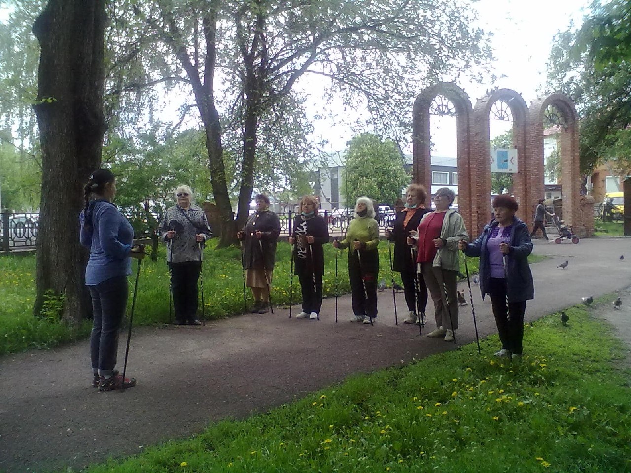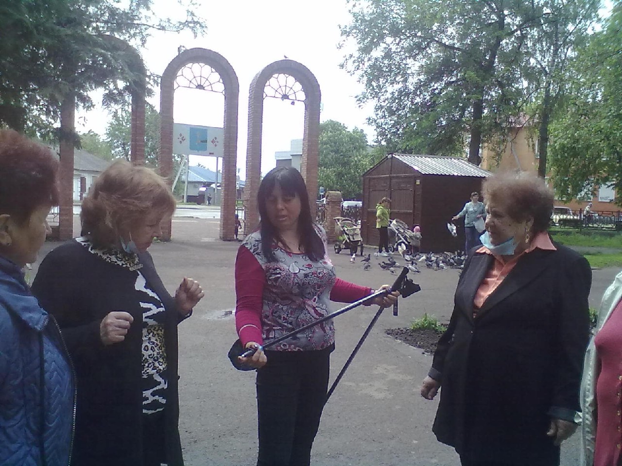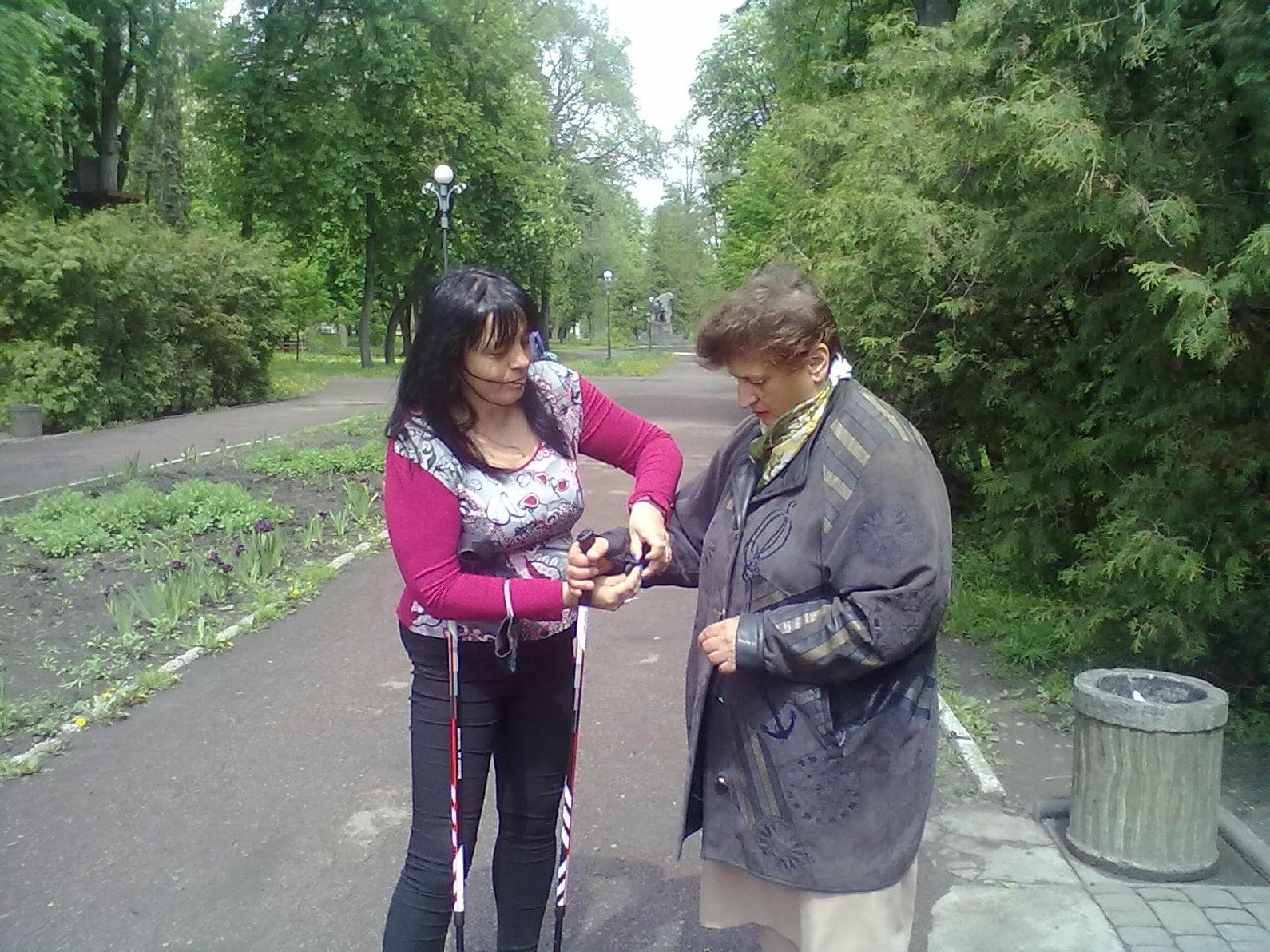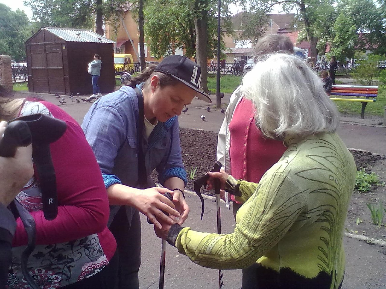 Здавалося б, взяв палиці в руки — і вперед! Однак не все так просто і в цій справі є свої тонкощі. Де можна тренуватися, що потрібно для занять, які переваги скандинавської ходьби для людей старшого віку? Про все, в чому необхідно розібратись початківцю детально розповіли Тетяна Володимирівна та Надія Олександрівна. Вони також провели практичну частину заняття. Досвідчені інструктори підібрали правильну висоту палиць індивідуально для кожного учасника та показували під час ходьби як правильно рухатись, аби принести користь організму. Завершилась практична частина заняття гімнастичними вправами.