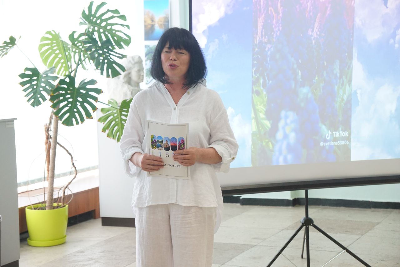 Для Світлани Лісної фото - це хобі. Вона поєднує його з освітянською діяльністю (працює консультантом центру професійного розвитку педагогічних працівників Лубенської територіальної громади), вмінням організовувати туристичні подорожі для рідних, друзів і колег, а ще городництвом та квітникарством. На світлинах, а їх 52, незабутні краєвиди як рідних Лубен, так і України. Кожне фото має символічну назву, її Світлана підбирала, демонструючи свою любов до літератури, адже це цитати відомих класиків.