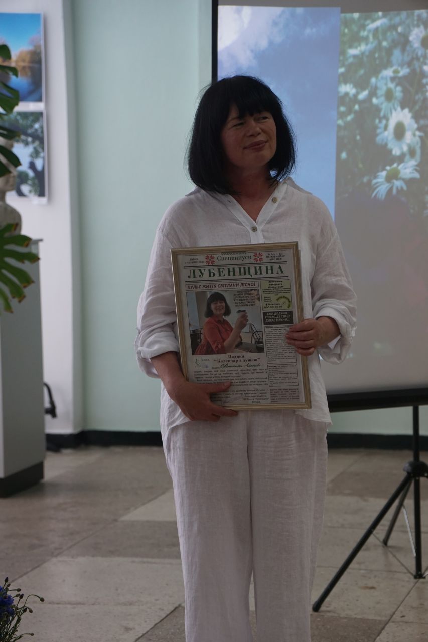 У подарунок від газети «Лубенщина» Світлана Лісна отримала примірник спецномера, присвяченого її творчій діяльності.
