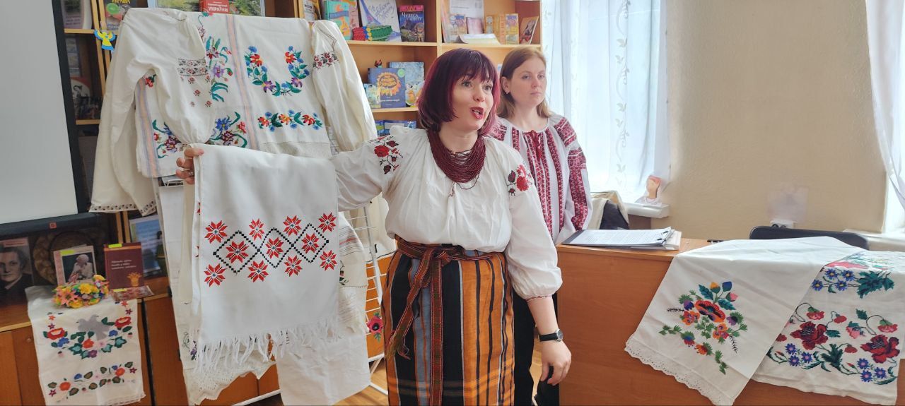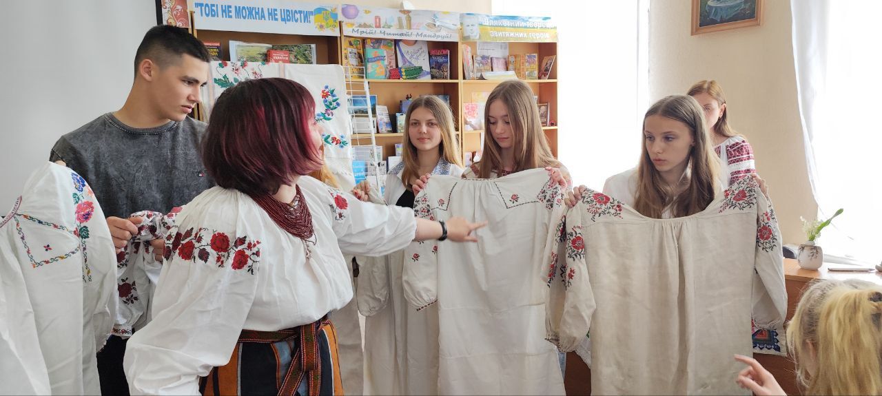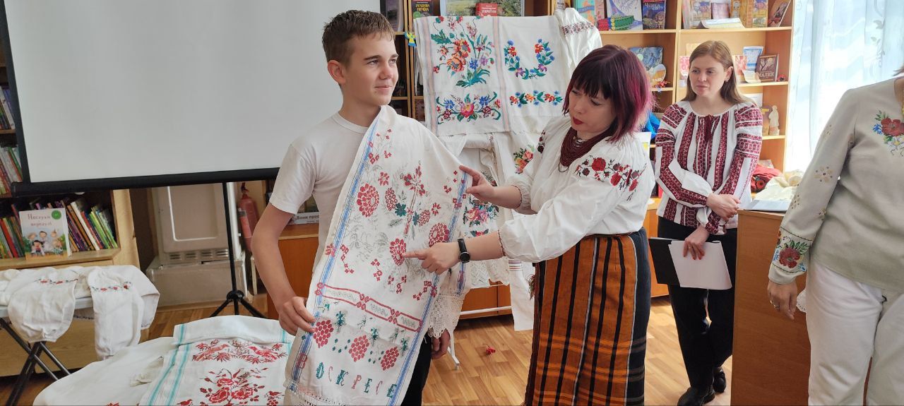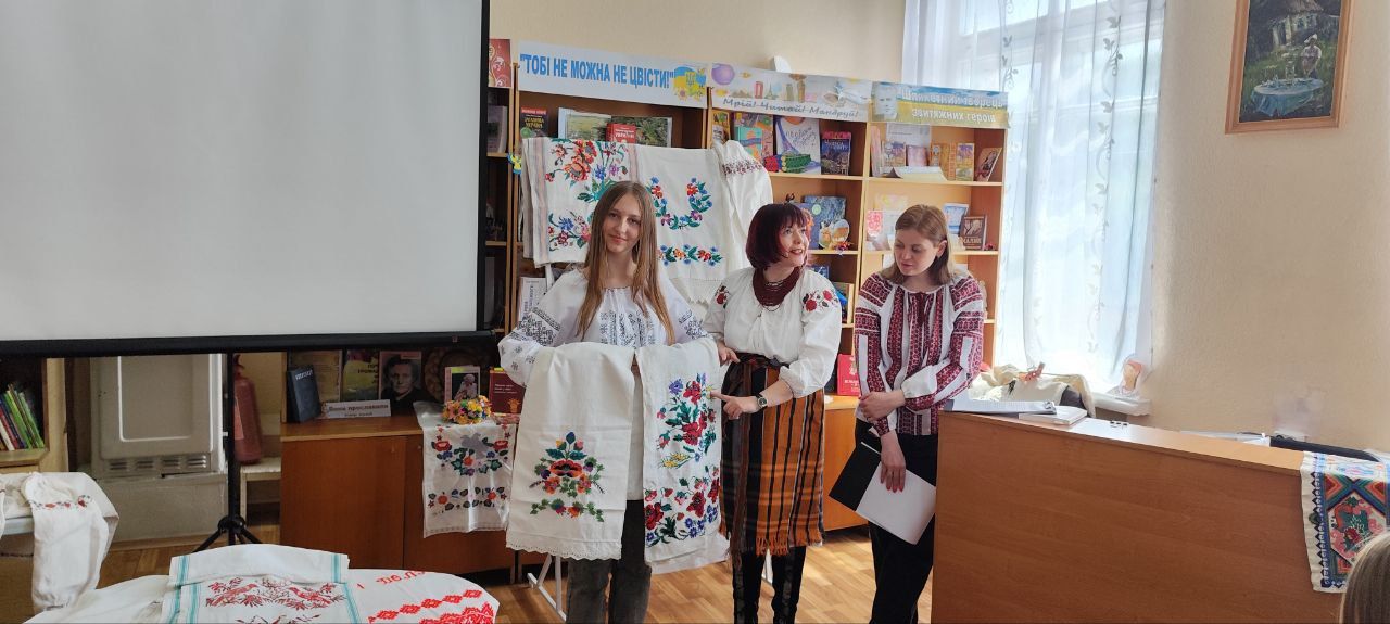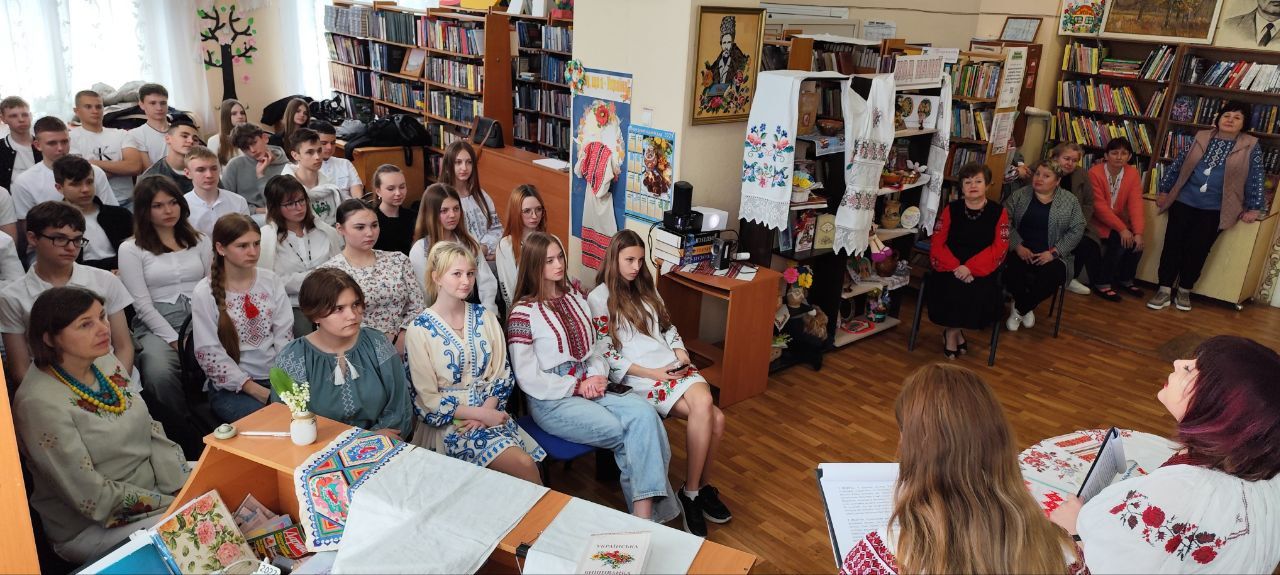До етнорозмови «Шиття мого роду» долучилися й учасники літературно-історичного клубу «Червлені щити», що діє на базі книгозбірні. Учні не лише обговорили спадок своїх бабусь та прабабусь, а й дізналися призначення рушників та сорочок, походження їх візерунків та орнаментів. «Подивіться на вишиті плечики, що ви бачите? Це так звані крильця – вони притаманні лише лубенським сорочкам. На вашу думку, з якою метою їх шили майстрині?». «Інколи праця вишивальниці могла врятувати життя їй та родині, як це було 33, 47 роки. А одна з наших землячок за збереження спадку нації стала Героєм України», - зазначають ведучі заходу. Учасники дійства отримали солодкі дарунки, оздоблені елементами вишивки — приємний та символічний штрих став завершенням теплого, дійства, сповненого українськими традиціями.