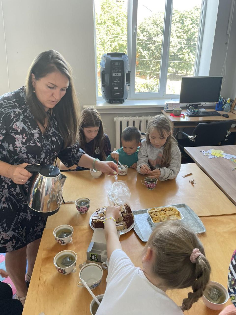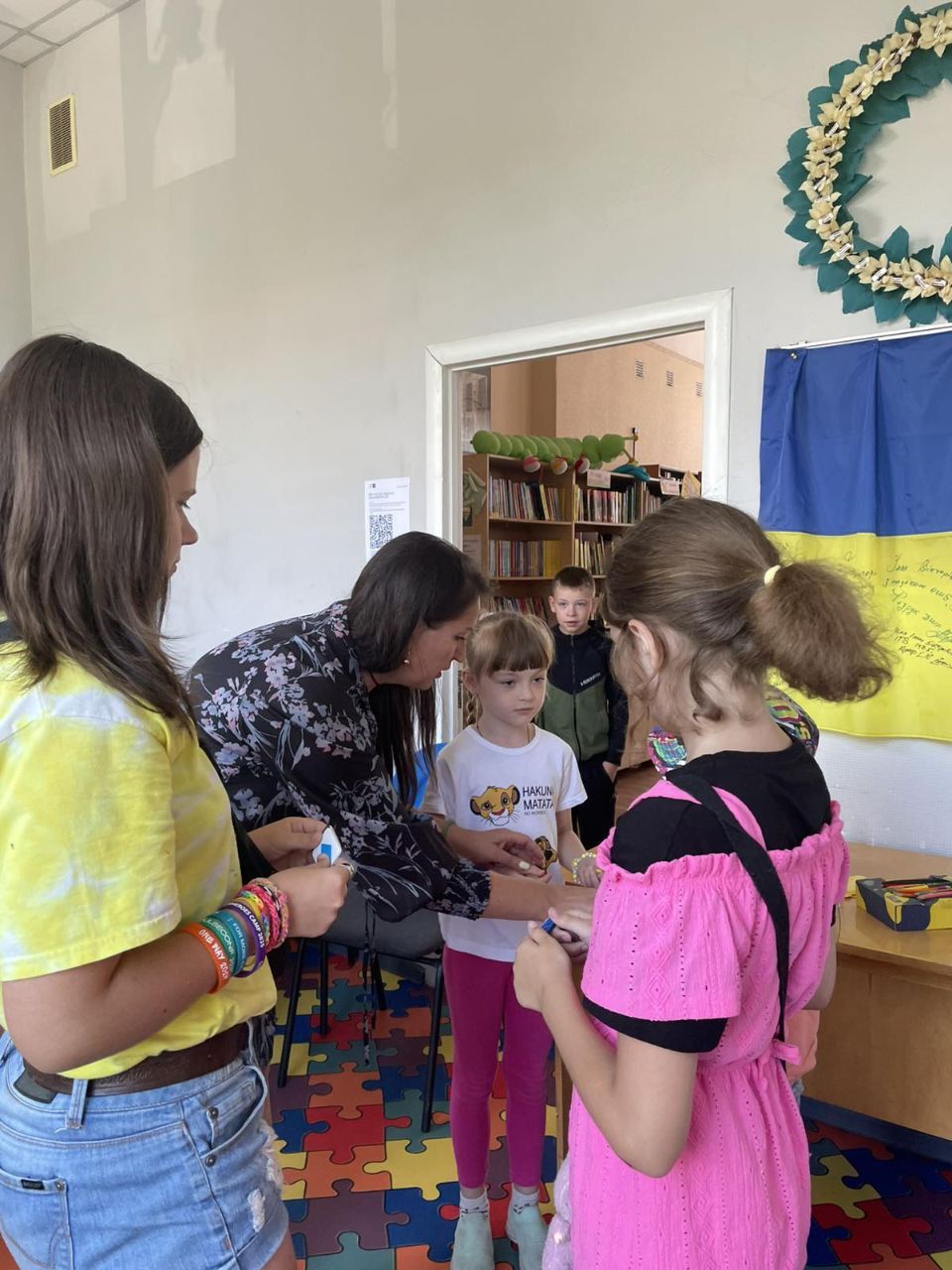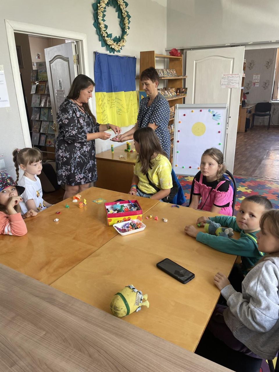 Фахівці використовують арттерапію у роботі з дітьми різного віку, адже спектр технік та інструментів цієї методики надзвичайно широкий. Нині наша гостя провела вправу «З долоньки в долоньку», котра активує увагу та чудово допоможе дітлахам під час майбутнього навчального процесу. А ще наші юні читачі разом виготовили позитивне сонечко – символ надії та повернення до світла та гарно провели час: спілкувалися, бавилися, чаювали і, звичайно, обрали цікаві книжки для свого дозвілля.