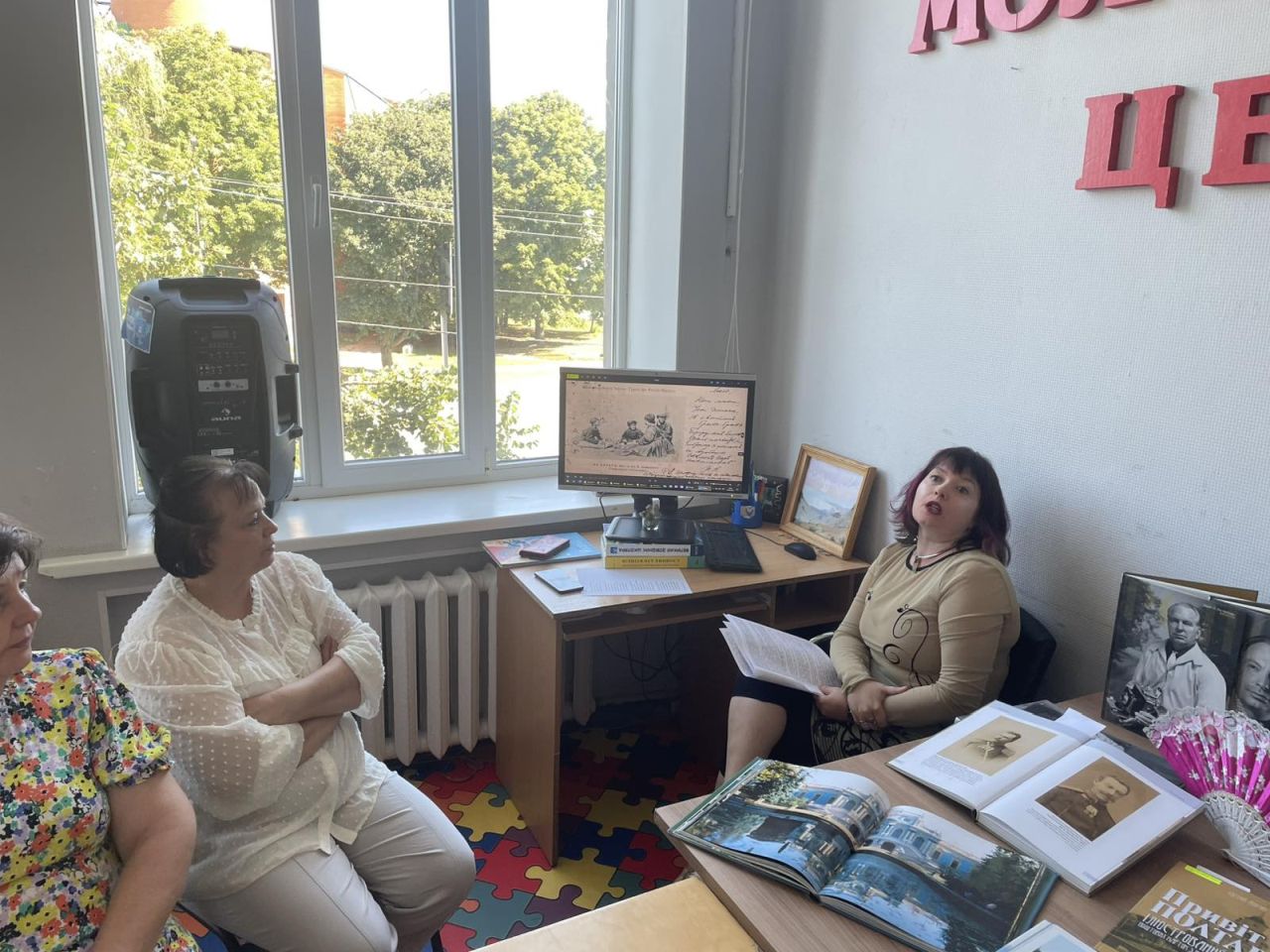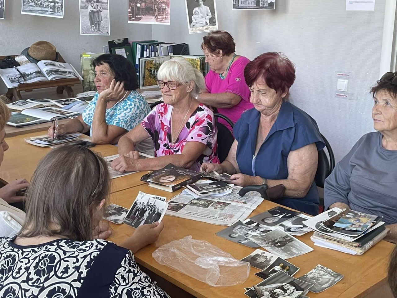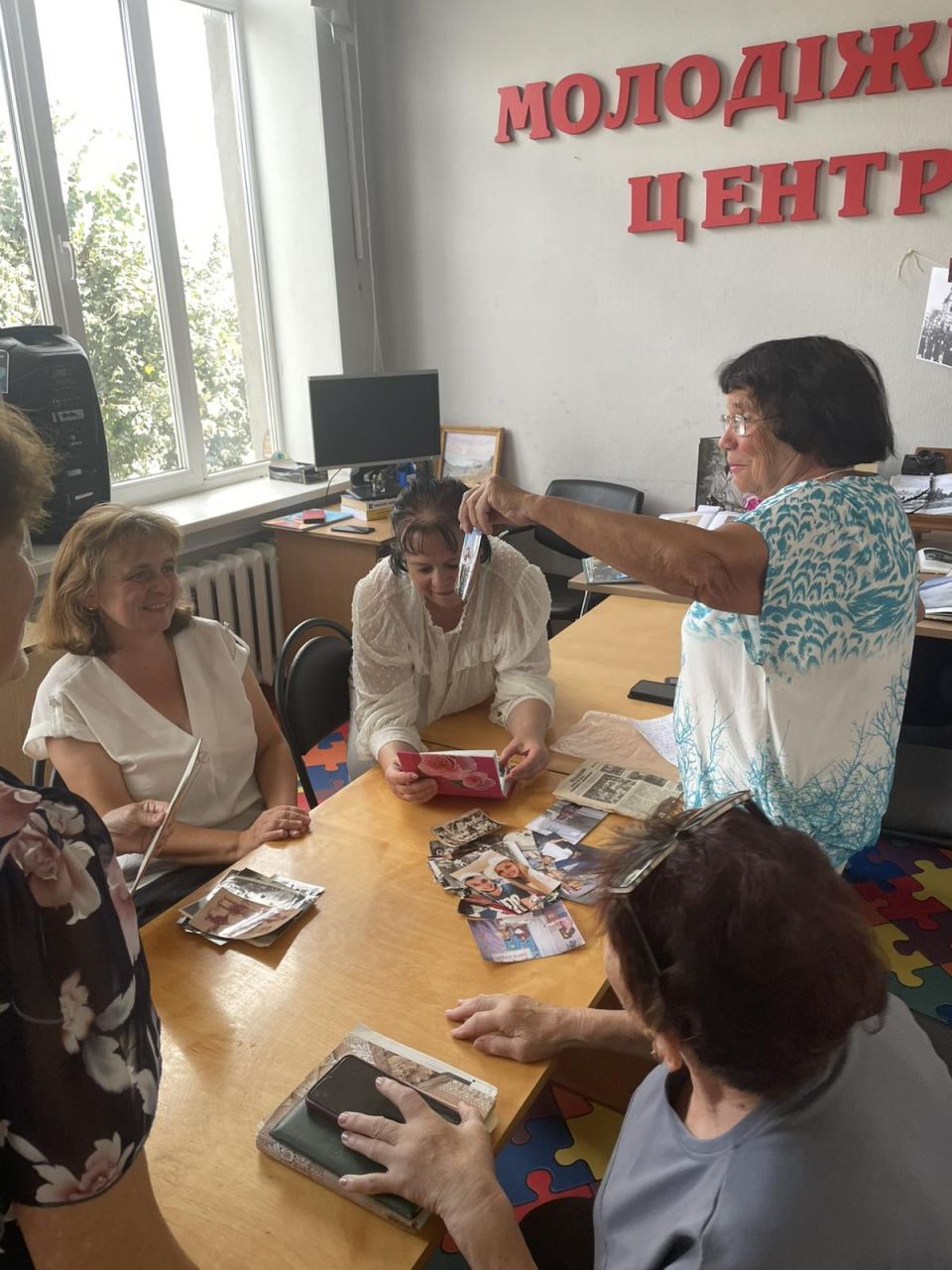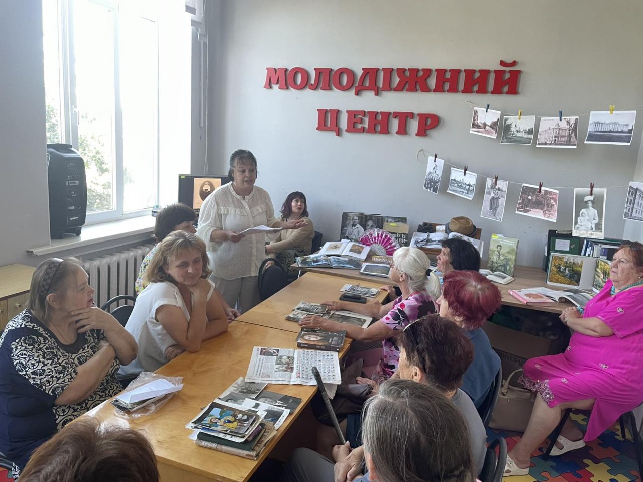 Ольга Помаз продекламувала відомий вірш Ліни Костенко «Старі фотографії», рядки з якого ми взяли за епіграф, а Наталія Норка прочитала власні поезії, присвячені родині. Родзинкою нашого краєзнавчого колажу стала фотосушка, фотоальбоми з фондів книгозбірні та унікальні родинні світлини, які наші гості принесли на зустріч, поділившись спогадами, історіями та живим спадком поколінь.