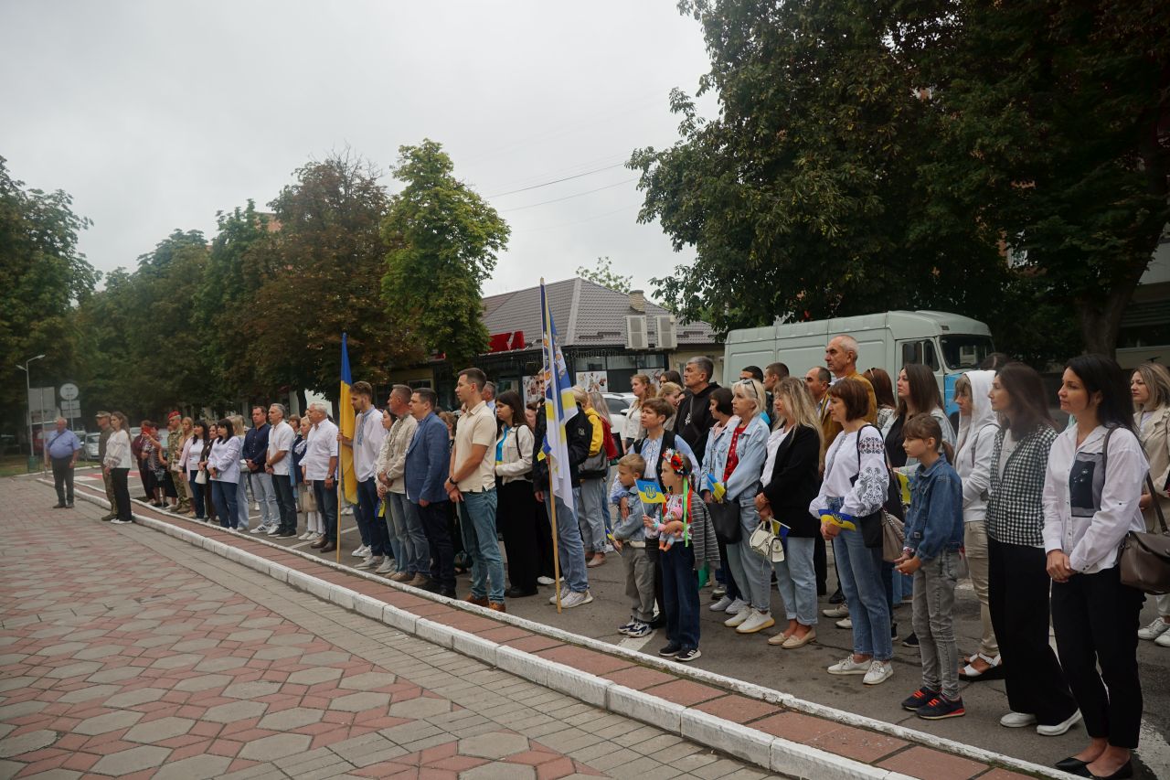 Ми віддаємо шану нашому прапору. Триває бій за українську свободу, він забирає найкращих. Присутні хвилиною мовчання вшанували пам’ять загиблих героїв, мирних жителів, усіх патріотів України, які поклали життя на вівтар свободи задля щасливого майбутнього, боронячи наш стяг і нашу незалежність.