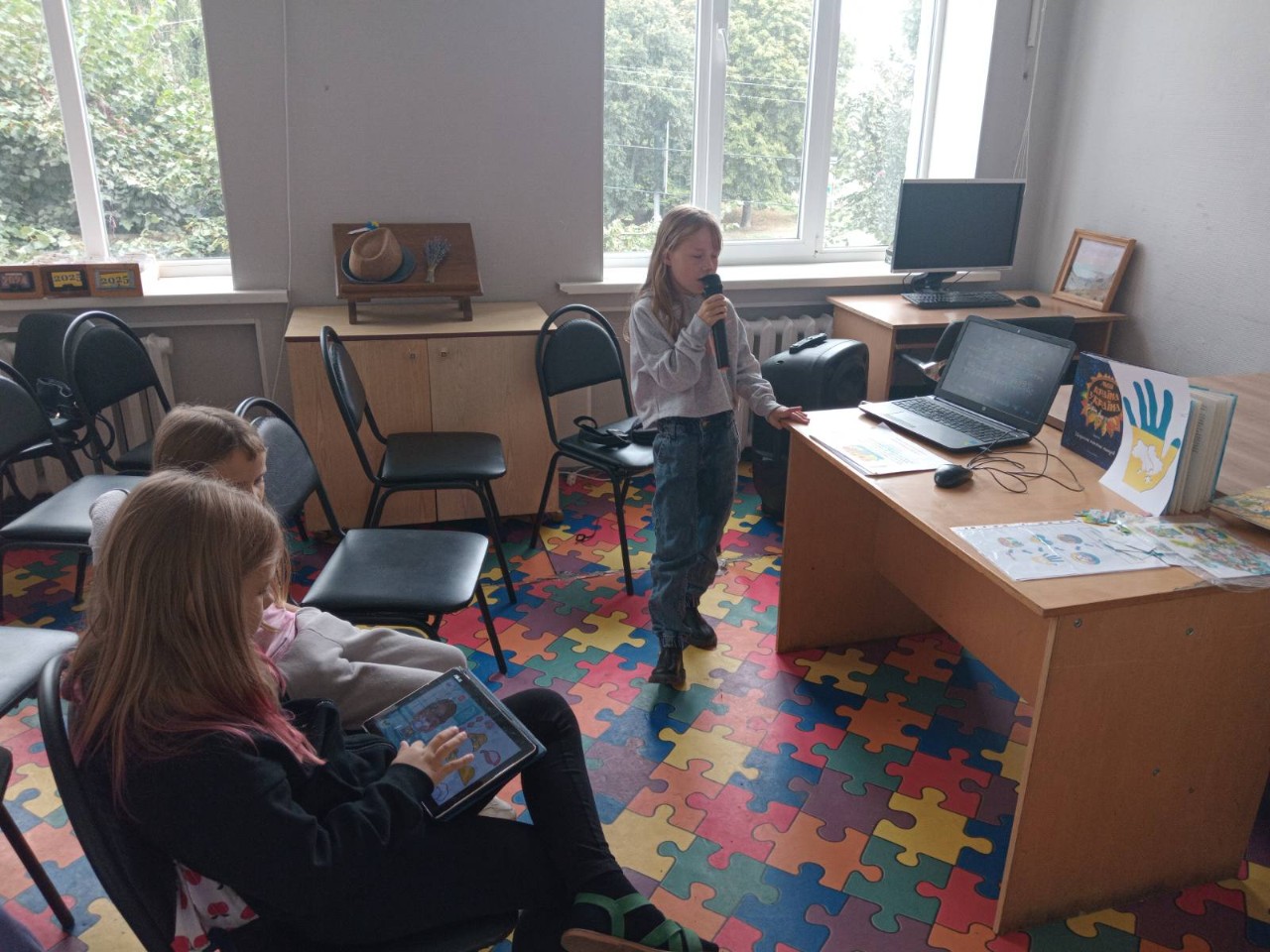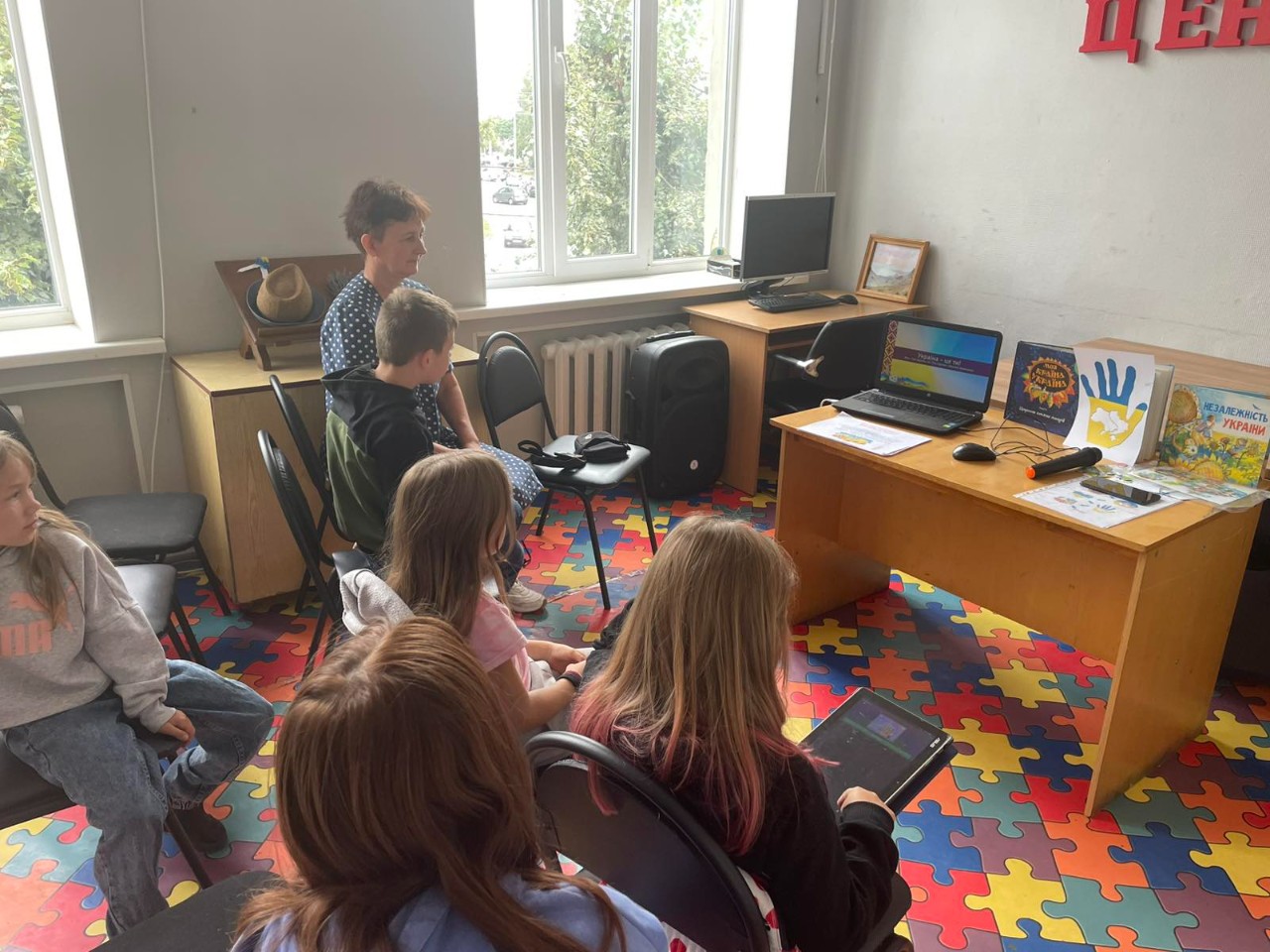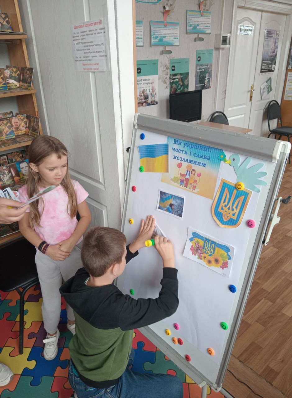 Ведуча заходу, бібліотекар Лариса Гончарук ознайомила маленьких та юних читачів з історією встановлення Незалежності України, розповіла про її тернистий та довгий шлях формування як окремої держави. Під час відео-вікторини «Що ти знаєш про Україну?» юні розумаки перевірили свої знання з історії України, національної символіки, мови, дізналися про видатних особистостей нашої держави. Квест-гра «Є така країна – Україна», якою продовжився захід, поповнила багаж знань хлопчиків та дівчаток про географію України й сусідніх європейських країн, показав злагоджену, дружну роботу в командах. Частинки своєї власної України діти відтворили в колажі «Ми – українці: честь і слава незламним!» Любов маленьких патріотів до рідної Батьківщини звучала в піснях та віршах. Бібліотекарі побажали дітям, щоб їхнє життя було яскравим, як кольори нашого стягу: синім і мирним, як небо та жовто-золотистим, як пшеничні поля України. Нехай якомога швидше над нашою державою засяє сонце перемоги!