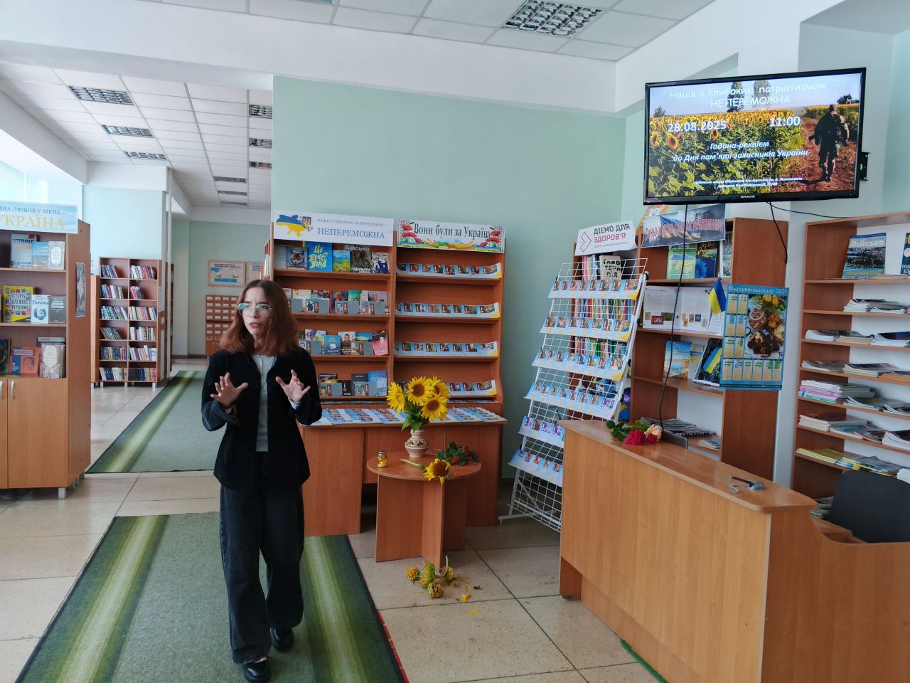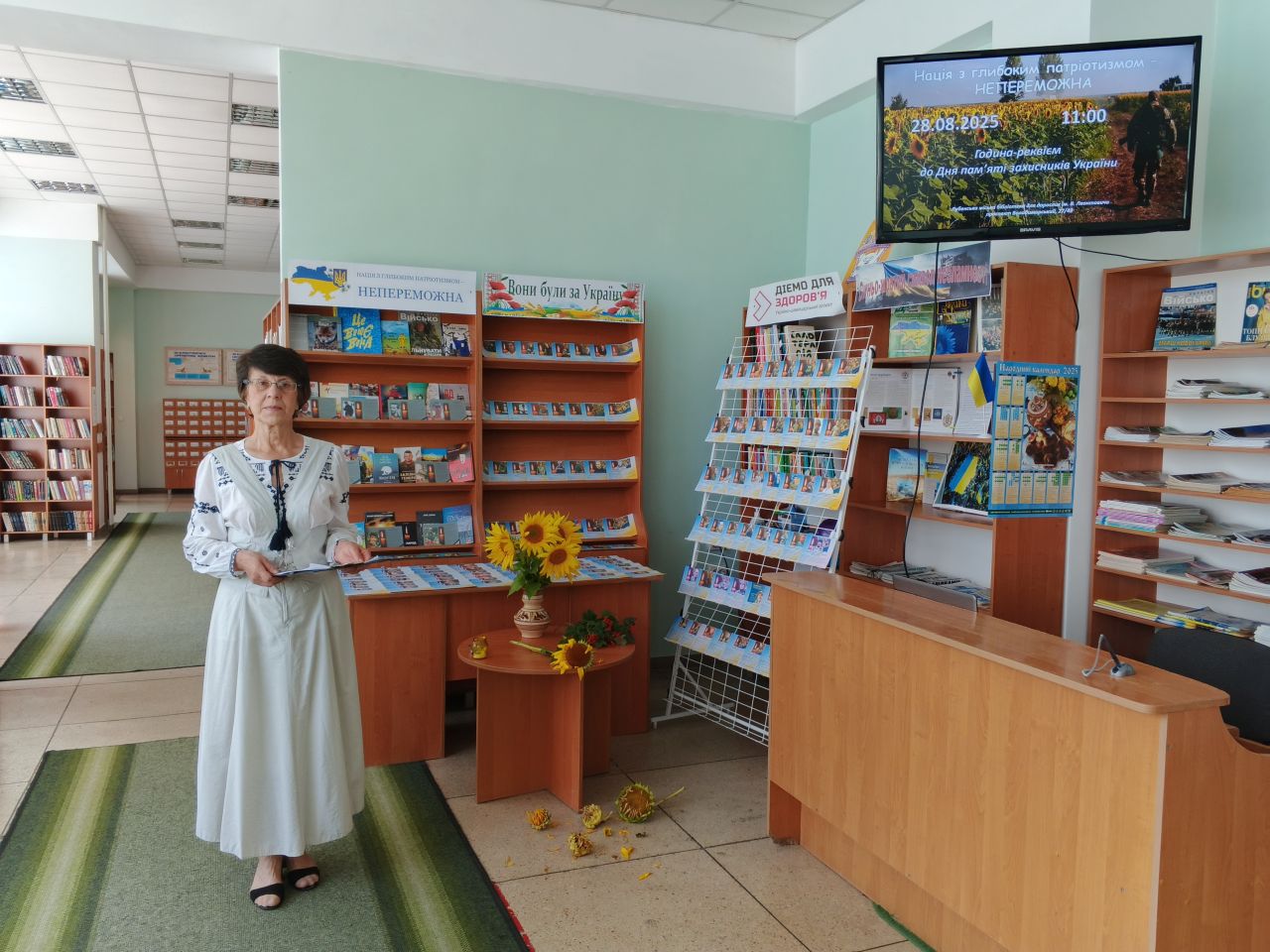 29 серпня – День пам’яті захисників України. День цей обрано не випадково, адже 29 серпня 2014 року агресор накрив вогнем наших захисників у соняшникових полях під час так званого «зеленого» коридору. Тому й символом Дня пам’яті стала квітка соняха – своєрідний символ життя. 28 серпня в Лубенській міській бібліотеці для дорослих імені Володимира Леонтовича відбулася година-реквієм «Нація з глибоким корінням – непереможна».