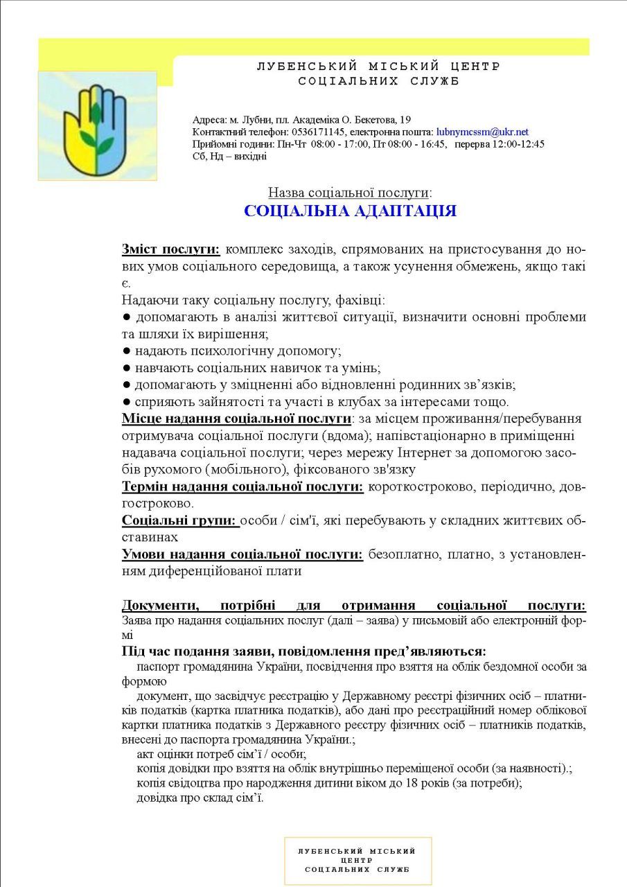 Саме для таких випадків Лубенський міський центр соціальних служб (директор Ірина Харченко) надає послугу «Соціальна адаптація».