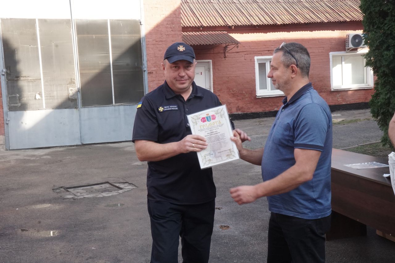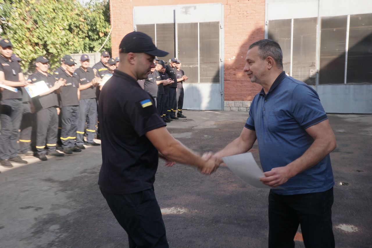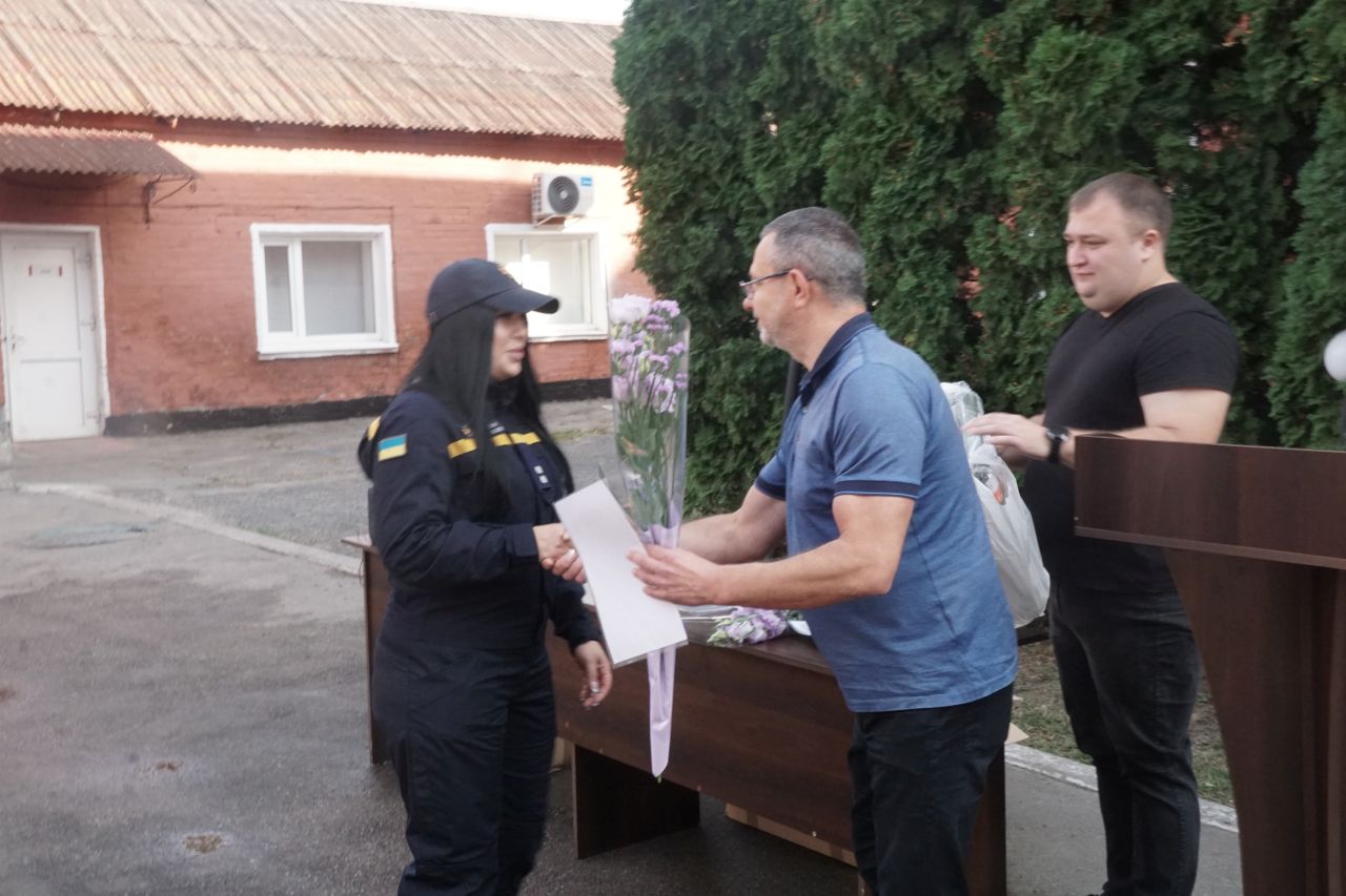 Під час урочистого шикування заступник Лубенського міського голови Олег Соболєв подякував працівникам ДСНС за службу – небезпечну та відповідальну, вручив грамоти та подарунки.