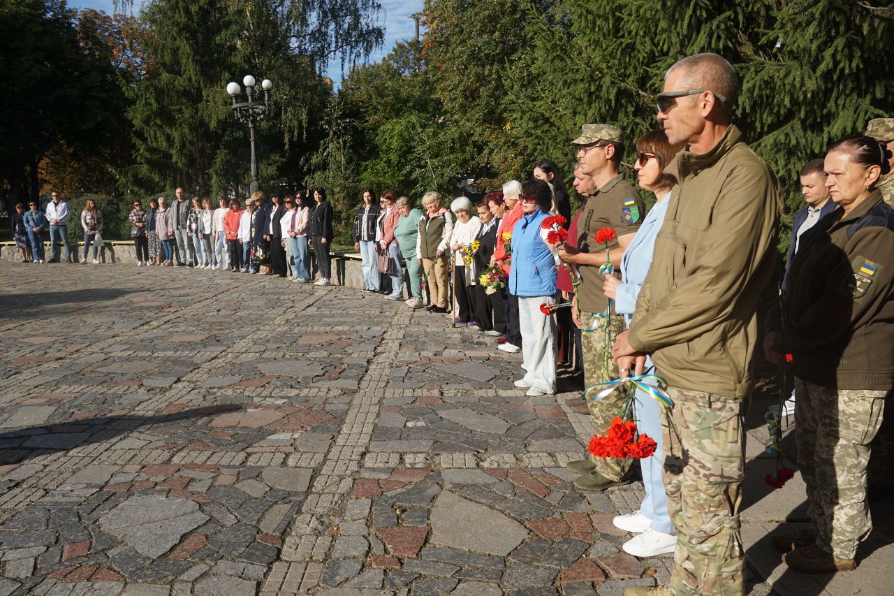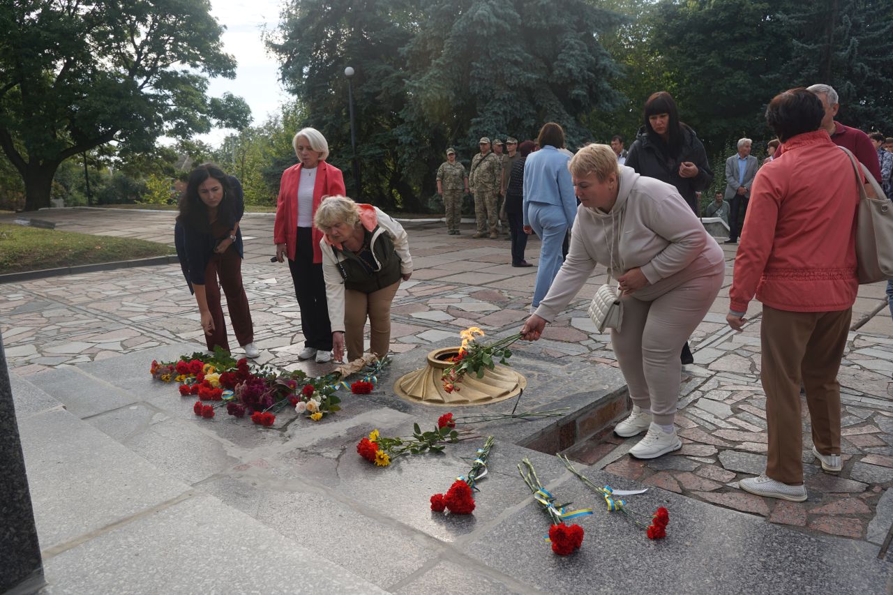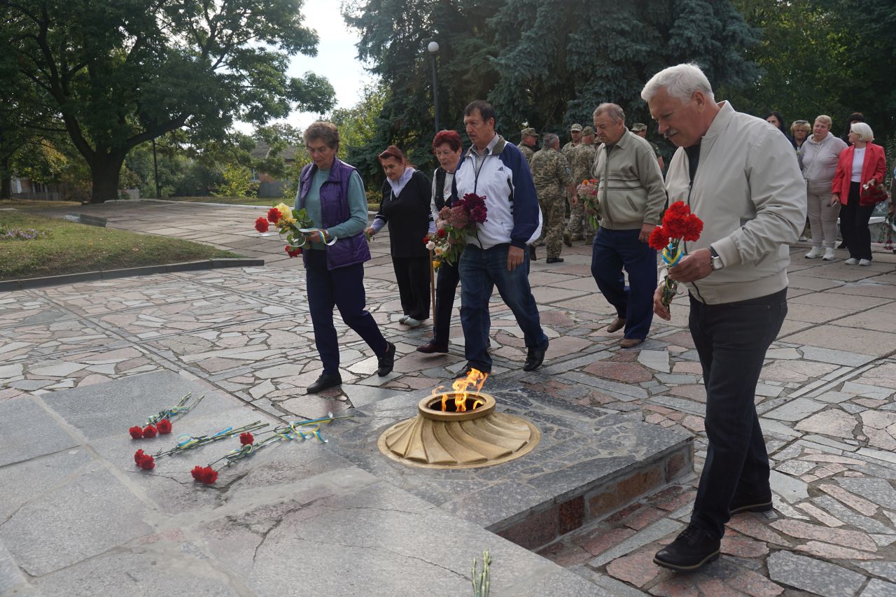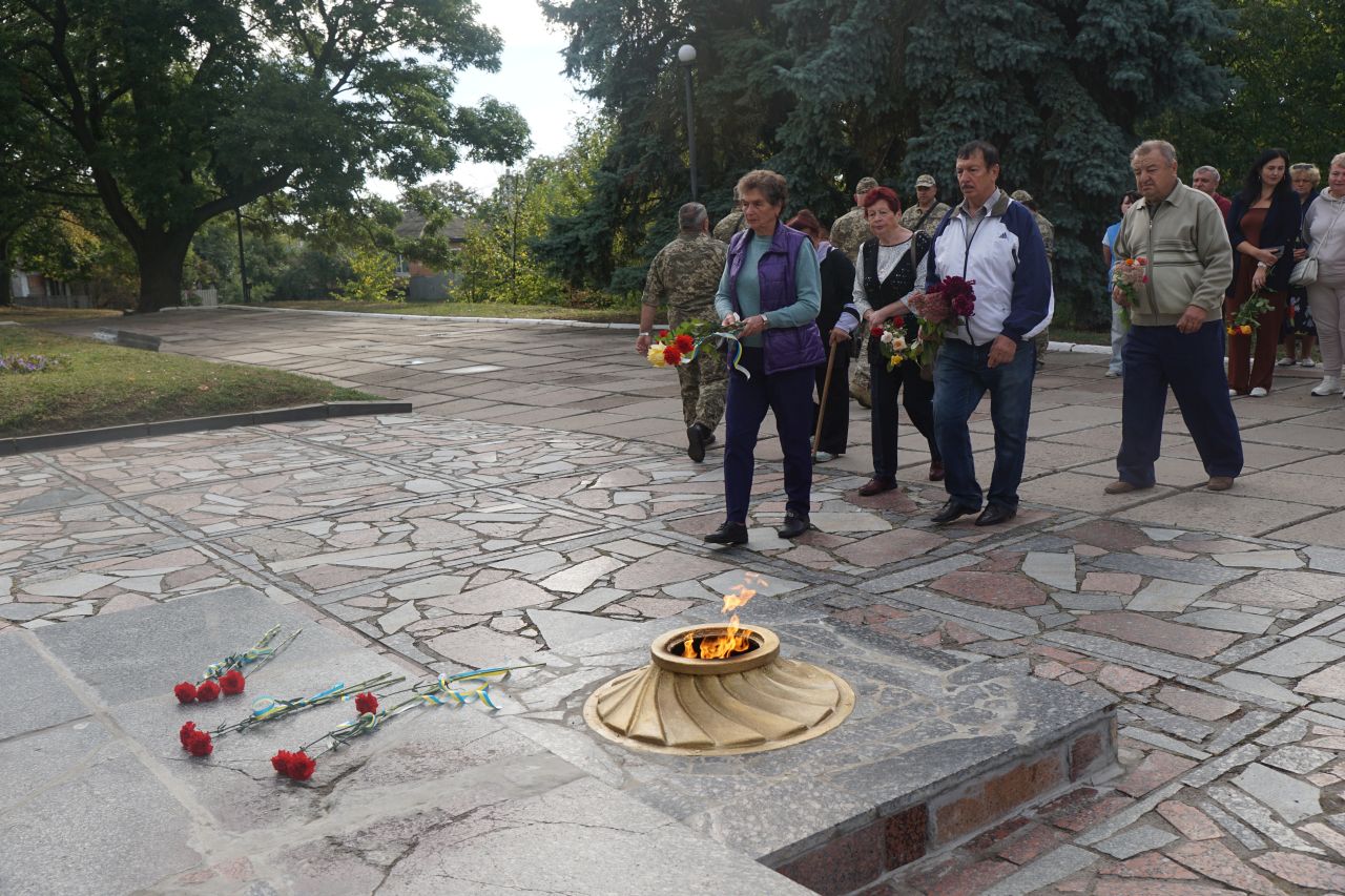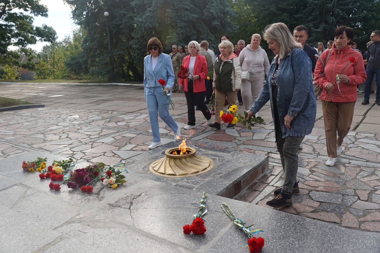 Квіти лягли і до Вічного вогню, що на Площі Слави. Хвилиною мовчання вшанували пам’ять полеглих у Другій світовій війні - тих, хто 82 роки тому у ніч з 18 на 19 вересня вигнали нацистських окупантів з нашого краю.