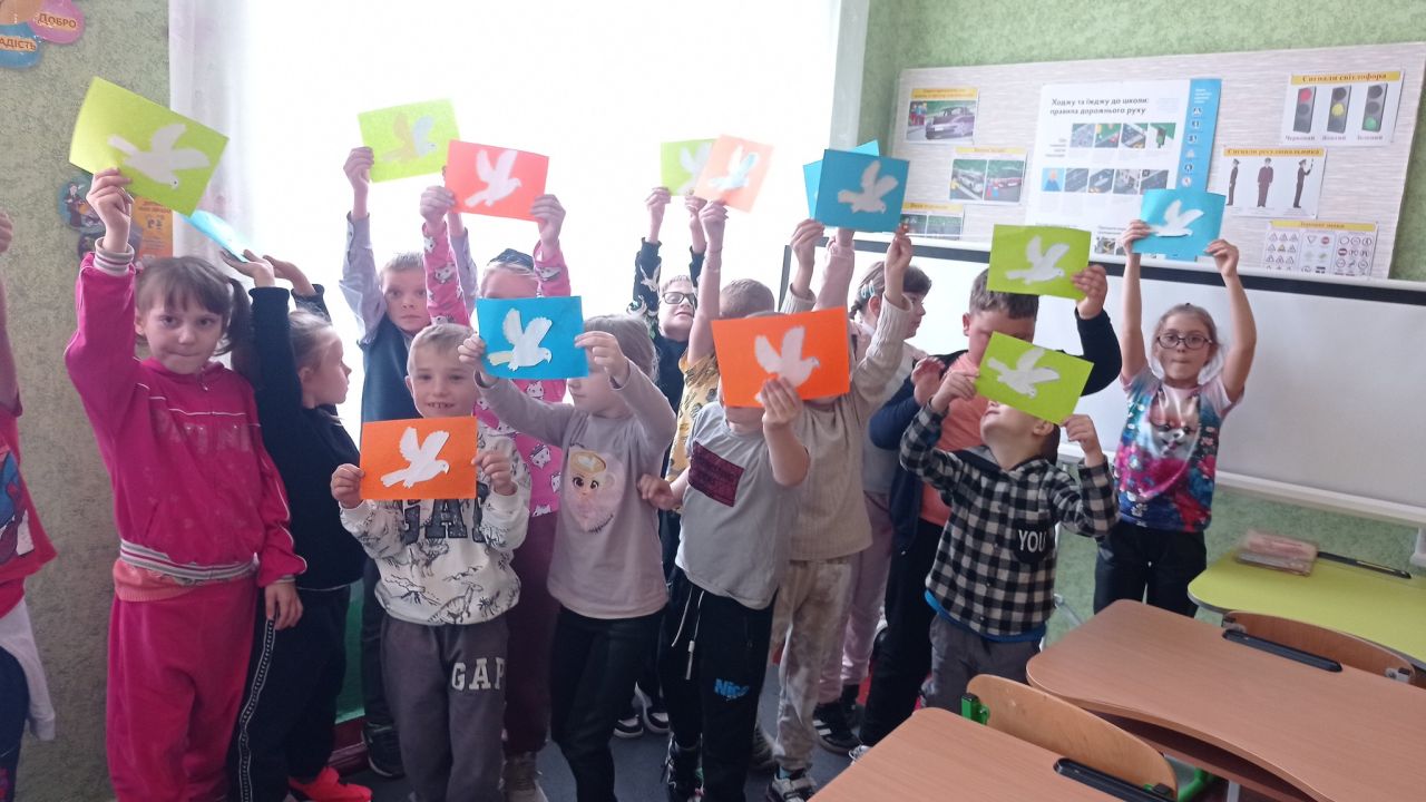 З нагоди Дня Миру до Опорного закладу Оріхівський ліцей імені В. Леонтовича завітала завідувач філії №21 Оріхівська сільська бібліотека та провела майстер-клас «Голуб миру». Діти молодших класів продовженого дня виготовили символ миру - голуб.