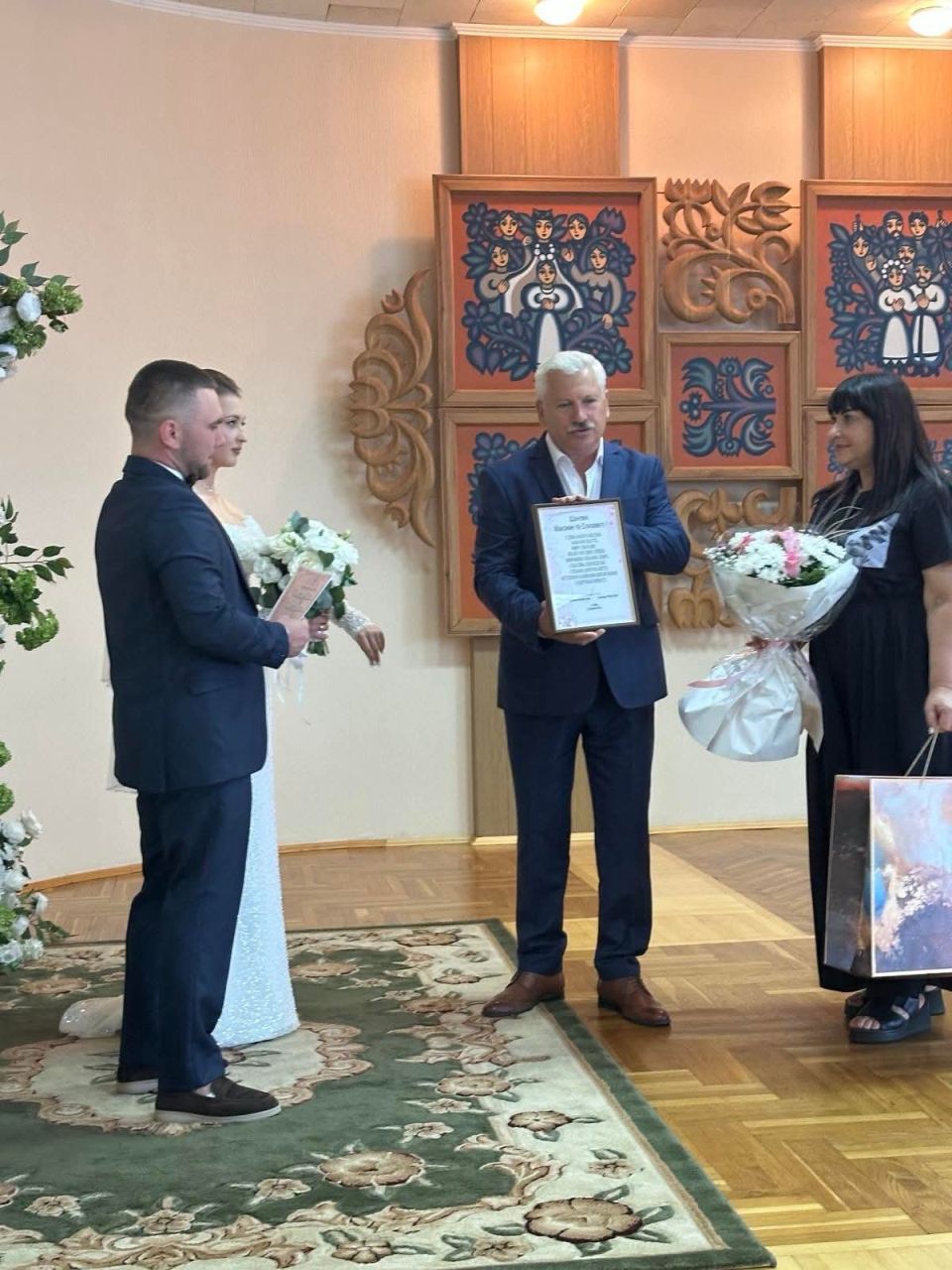 Молодят, які на День міста стали на весільний рушник, у Лубенському відділі ДРАЦС, традиційно привітали Лубенський міський голова Олександр Грицаєнко та начальник відділу молоді та спорту виконавчого комітету Лубенської міської ради Світлана Скиба. Нехай любов подружжя Єлизавети та Максима Шостак міцніє з роками у рідних їм Лубнах.