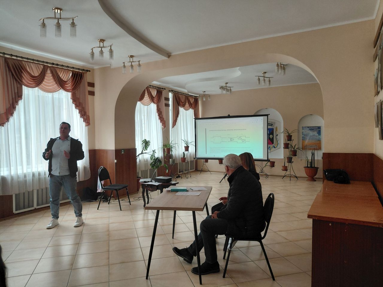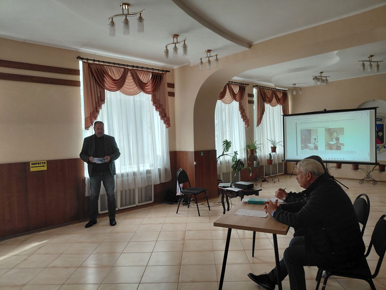 Директор Центру культури і дозвілля Інна Скиба розповіла присутнім про хід виконання ремонтних робіт у закладі культури та, зокрема, про влаштування засобів безперешкодного доступу до приміщень Центру культури і дозвілля.