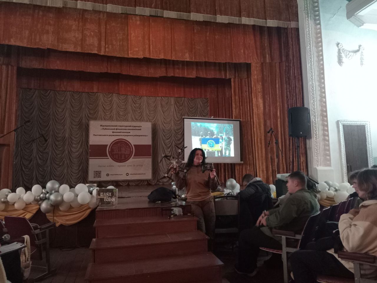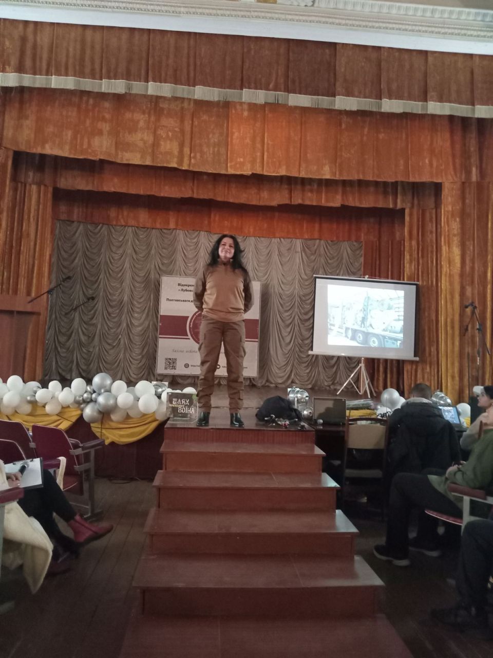 З нагоди Дня захисників і захисниць бібліотекарі Публічної бібліотеки імені Володимира Малика Лариса Гончарук та Марина Кононенко долучилися до уроку військової грамотності у ВСП «Лубенський фінансово-економічний фаховий коледж ПДАУ». Провела його відома військова волонтерка, керівник Благодійного Фонду «Честь і Совість» Оксана Каневська, яку воїни називають феєю та берегинею. Ось фонд збирає на FPV-дрони, сітки та покриття. Ось пані Оксана особисто відвозить цінний вантаж на Сумщину, Донеччину та інші «гарячі точки», де служать наші земляки. А цієї осені, завдяки співпраці з Міжнародним Альянсом Захисників України, героїня зустрічі вже провела уроки військової грамотності в гімназіях «ПРОСВІТ», імені В. Роїк, М. Номиса та К. Скаржинської.