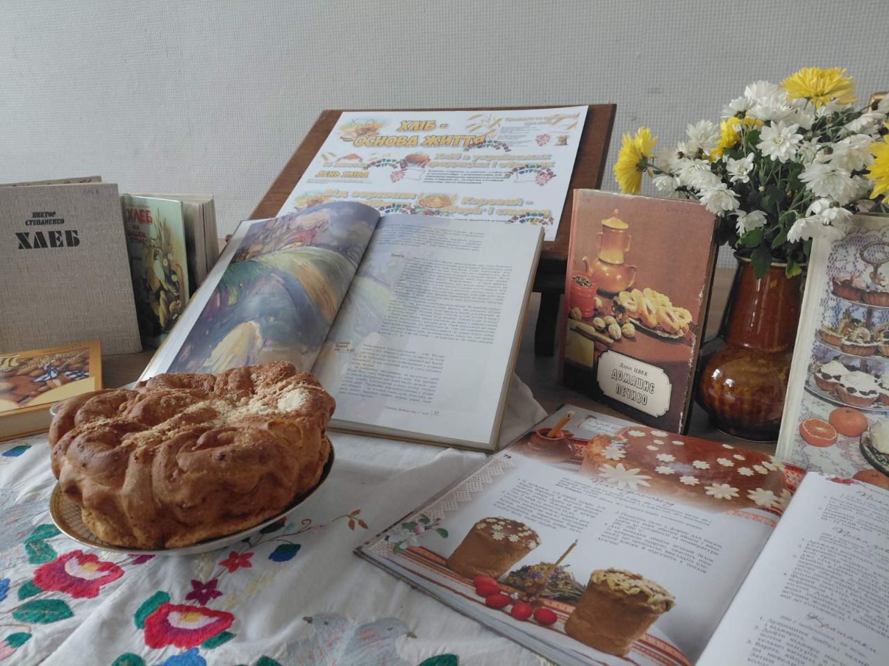 Понад 5 000 років тому перша хлібина не була схожа на сучасну – стародавні єгиптяни готували її у вигляді зернової запеченої каші. Пізніше почали випікати на гарячому камінні хлібні паляниці із грубо меленого зерна. Вже в III тисячолітті до н. е. випікали три десятки сортів хліба, а Дюма зазначав, що українки можуть спекти сто видів хліба з нічого! До речі, до Книги рекордів Гіннеса потрапив український коровай діаметром 1,6 метри та вагою півтора центнери. Учасники погортали цікаві книги про хліб із фондів книгозбірні, насолодилися теплим спілкуванням та чаюванням. Бо ж коли: «Хліб на столі, то стіл — престіл, а коли хліба ні кусочка, тоді стіл лиш гола дошка!»