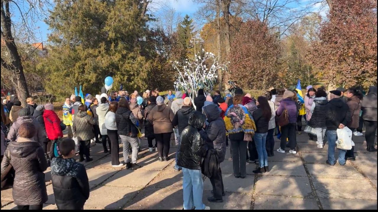 На дереві замайоріли стрічки, а у небо злетіли кульки білого чорного, блакитного кольорів, що символізують біль утрати, віру в диво й любов, що не згасає.