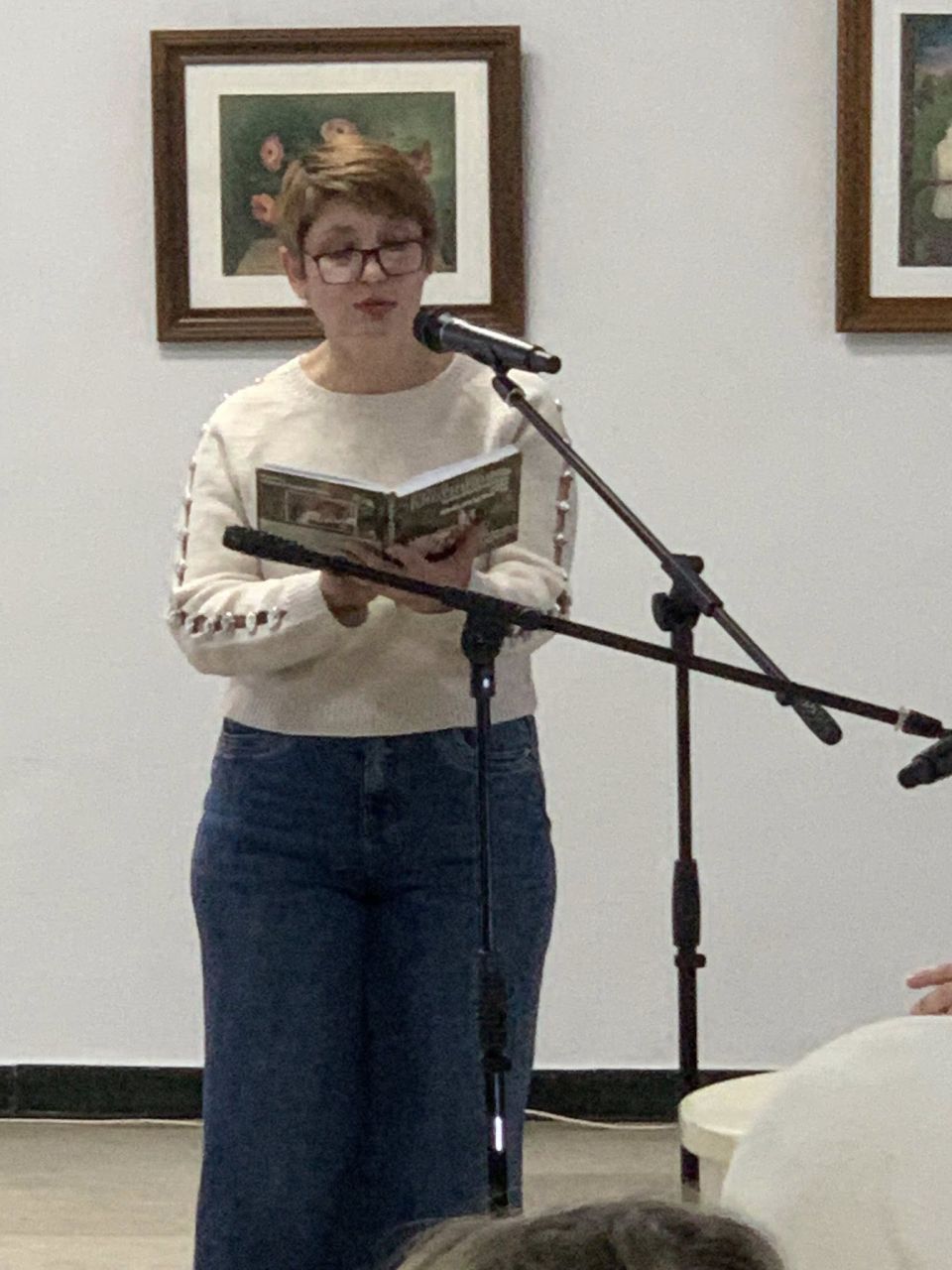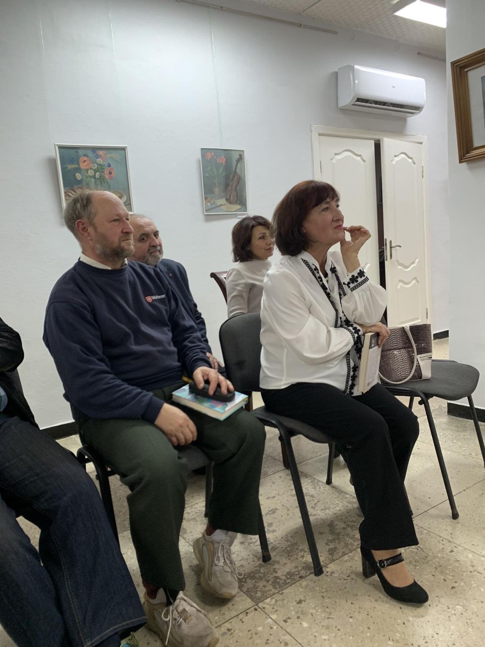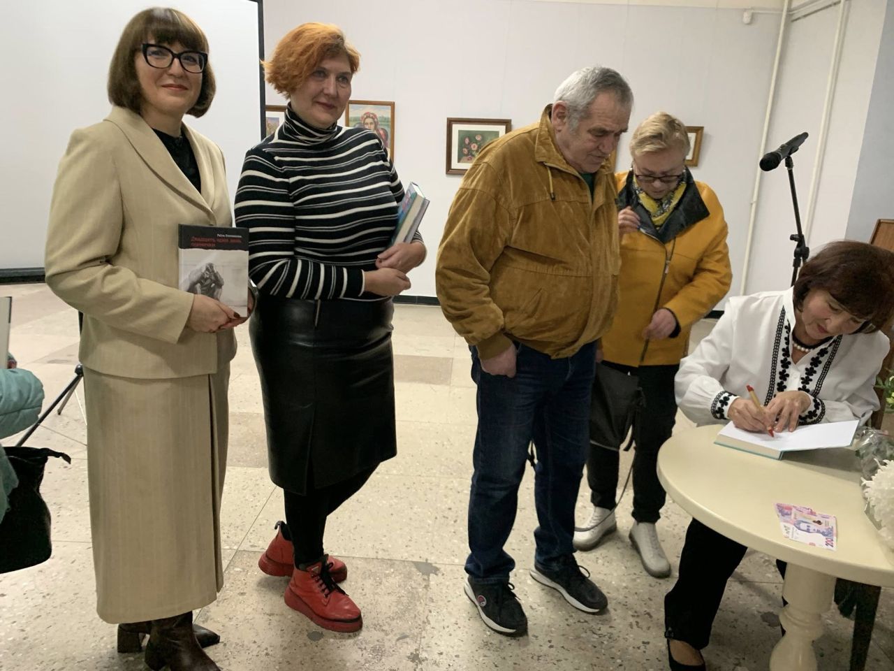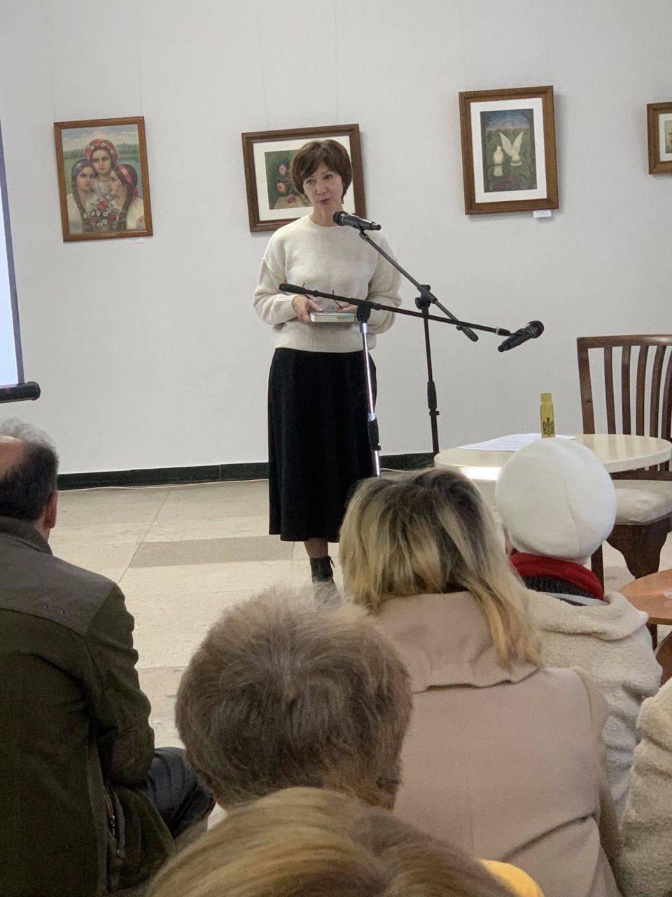 Про активну громадянську позицію та волонтерську діяльність письменниці розповіла голова громадської організації «Знання і творчість» Зоя Шерстюк. Під час заходу відбувся благодійний аукціон та збір коштів. Усі зібрані донати буде передано на потреби 116 бригади ТРО.