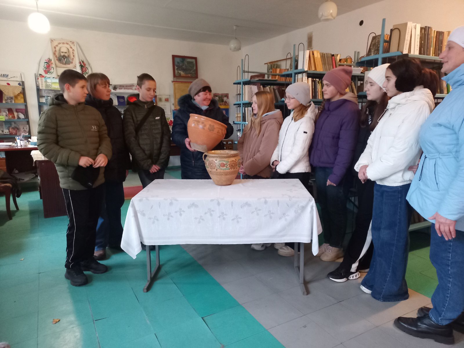 18 листопада члени пошукового загону «Калинонька» гімназії імені Героя України Віри Роїк разом із керівниками Шуть Л.В. та Лисенко О.Ю. завітали до філії № 20 Олександрівська сільська бібліотека аби поглибити знання про український побут та традиції.